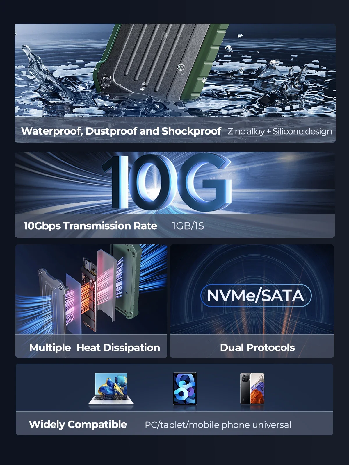 ¿Por qué elegir la carcasa de protocolo dual ORICO portátil para exteriores M.2 NVMe/SATA?
