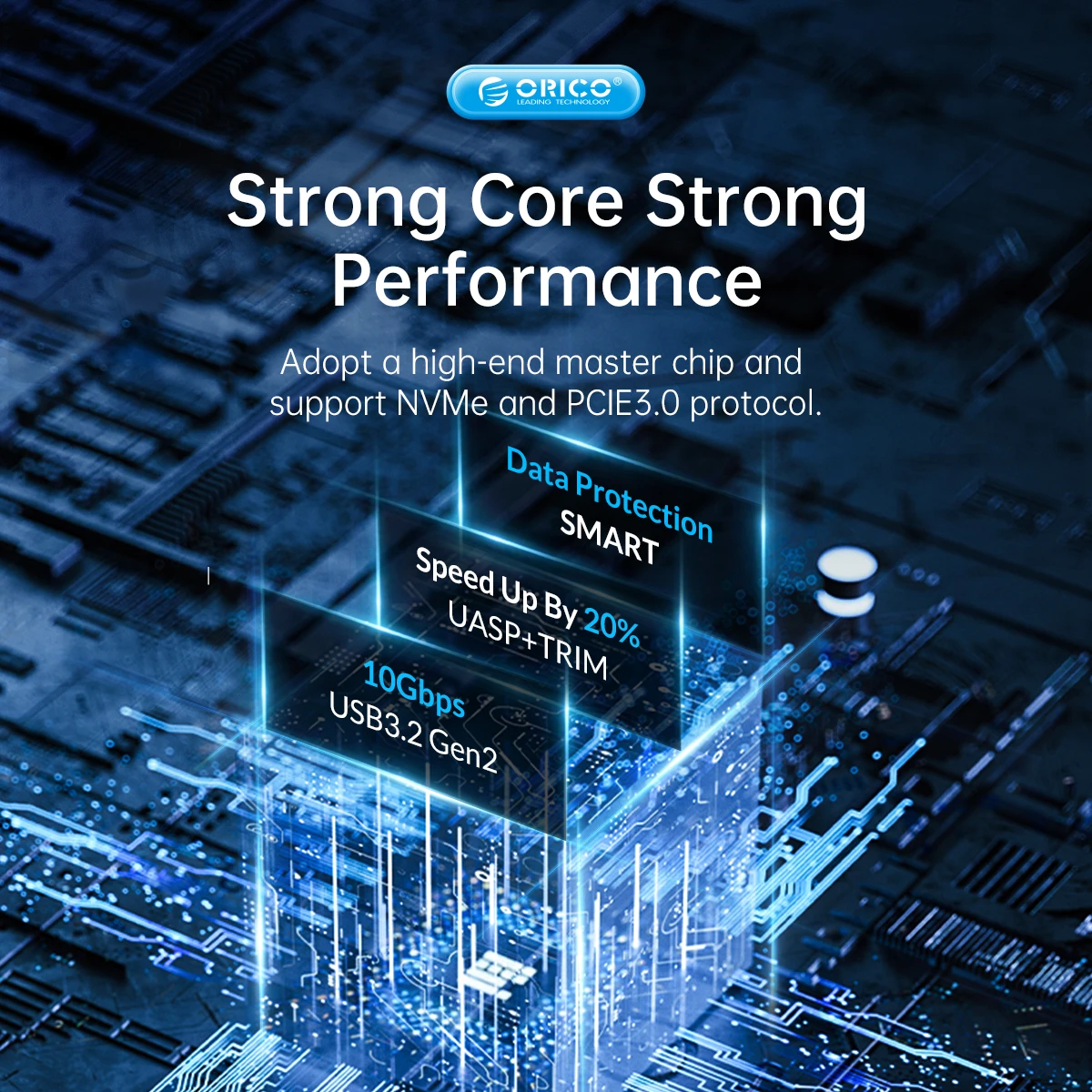 Caja SSD ORICO nvme Utilizando un controlador IC de alto rendimiento, admite el protocolo de aceleración UASP y las funciones Trim, SMART, que pueden mejorar eficazmente la velocidad del SSD, proteger el funcionamiento de los datos y extender la vida útil del SSD.