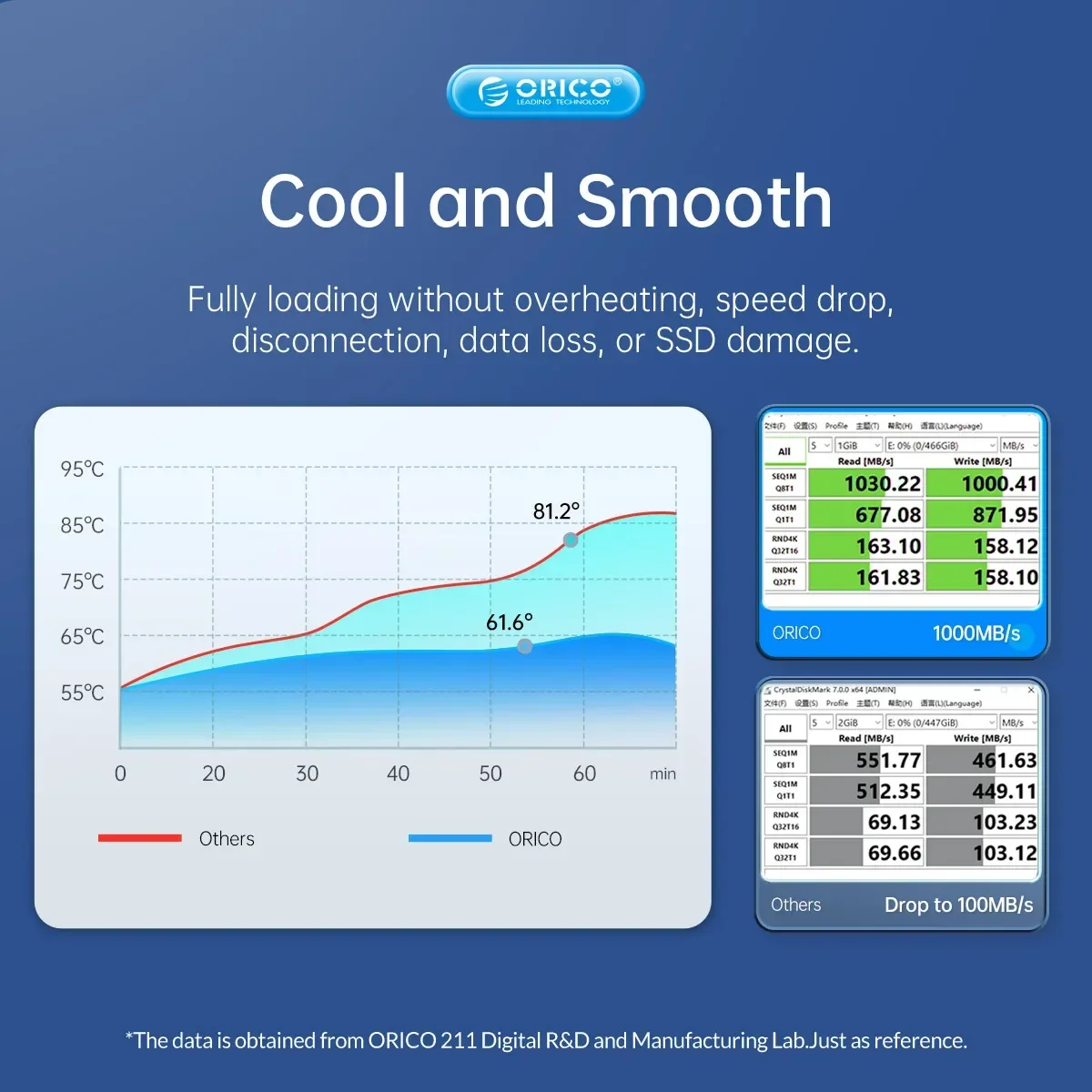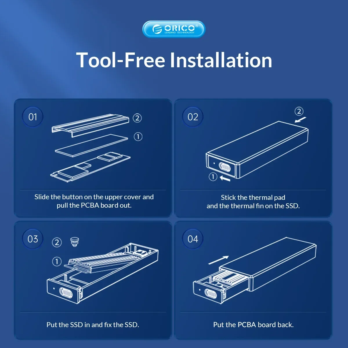 Caja SSD ORICO nvme Utilizando un controlador IC de alto rendimiento, admite el protocolo de aceleración UASP y las funciones Trim, SMART, que pueden mejorar eficazmente la velocidad del SSD, proteger el funcionamiento de los datos y extender la vida útil del SSD.
