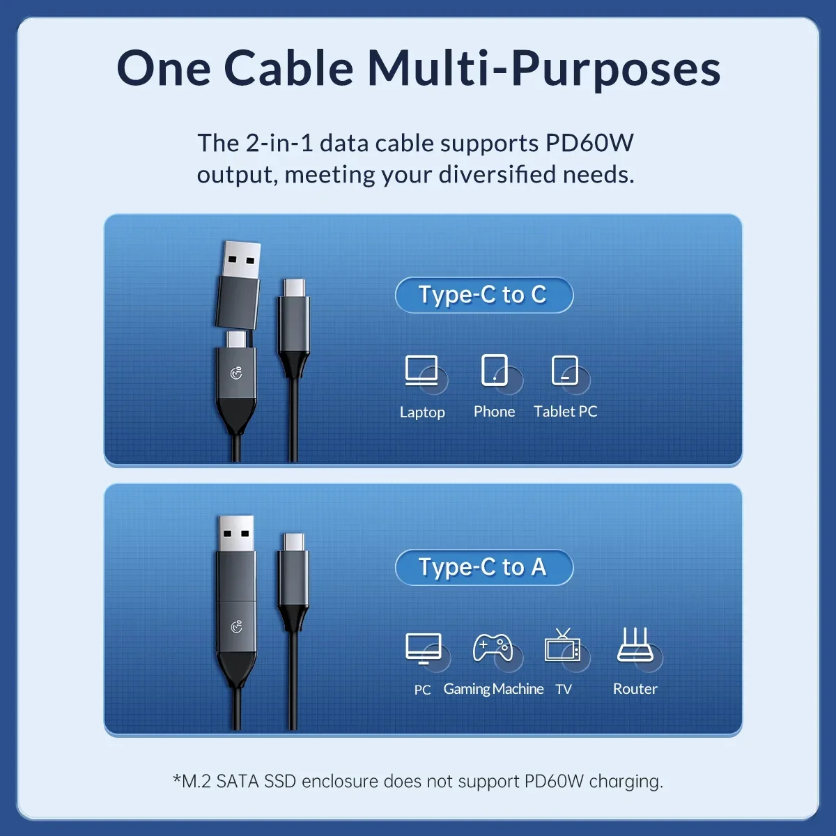 Solo admite NVMe PCI-E protocolo M key/M&B Key SSD, con cable de fecha 2 en 1 C a C/A de 30 cm.