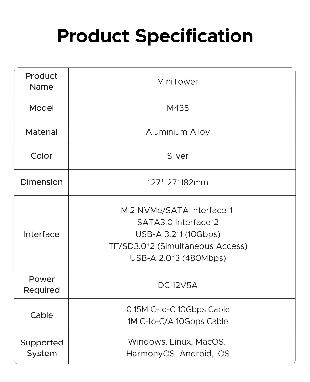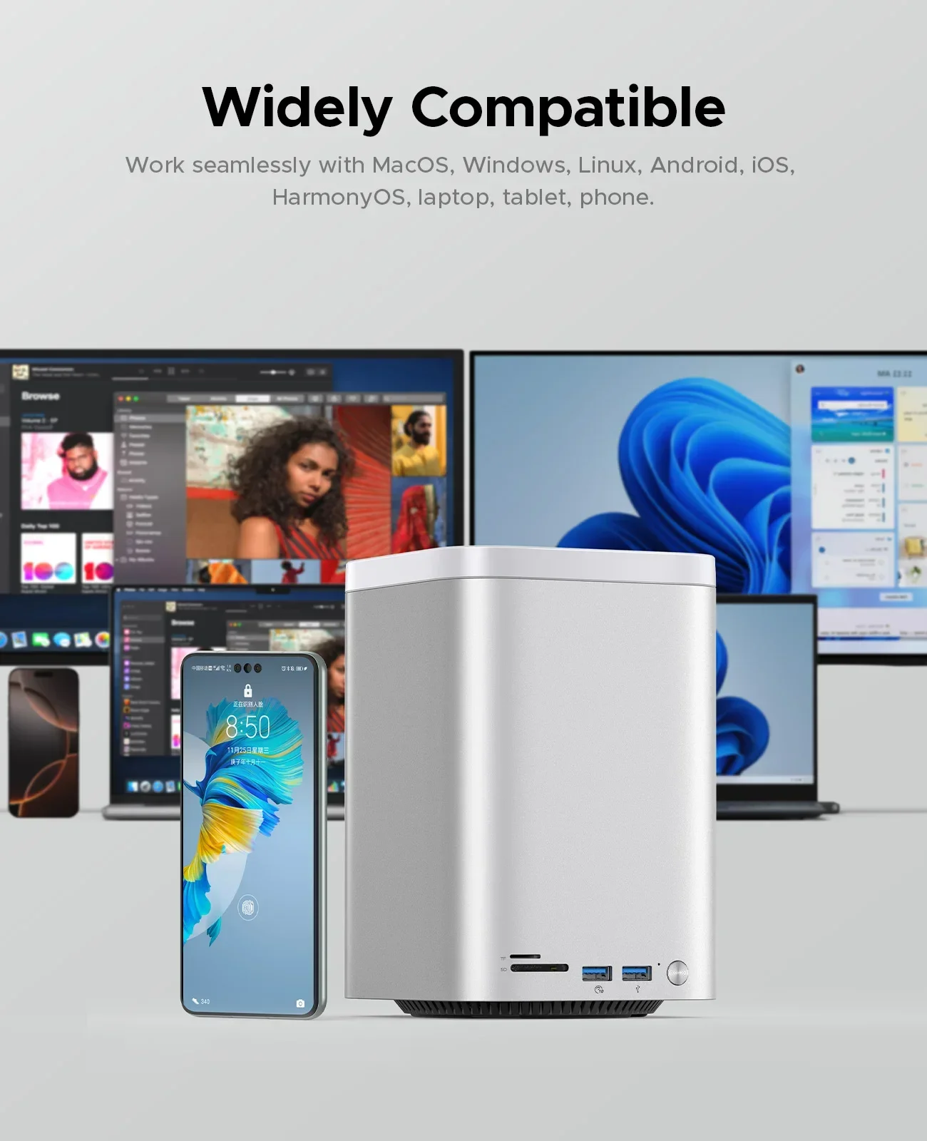 Comprar ORICO M.2 SSD carcasa de disco duro de 3,5 pulgadas Mini Tower Mac Mini M4 Dock tipo C estación de acoplamiento almacenamiento híbrido de escritorio DAS