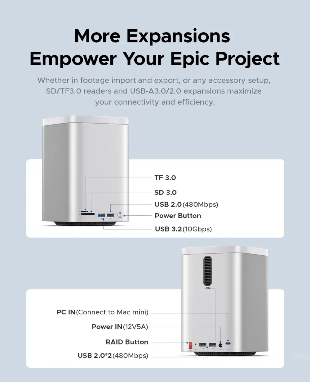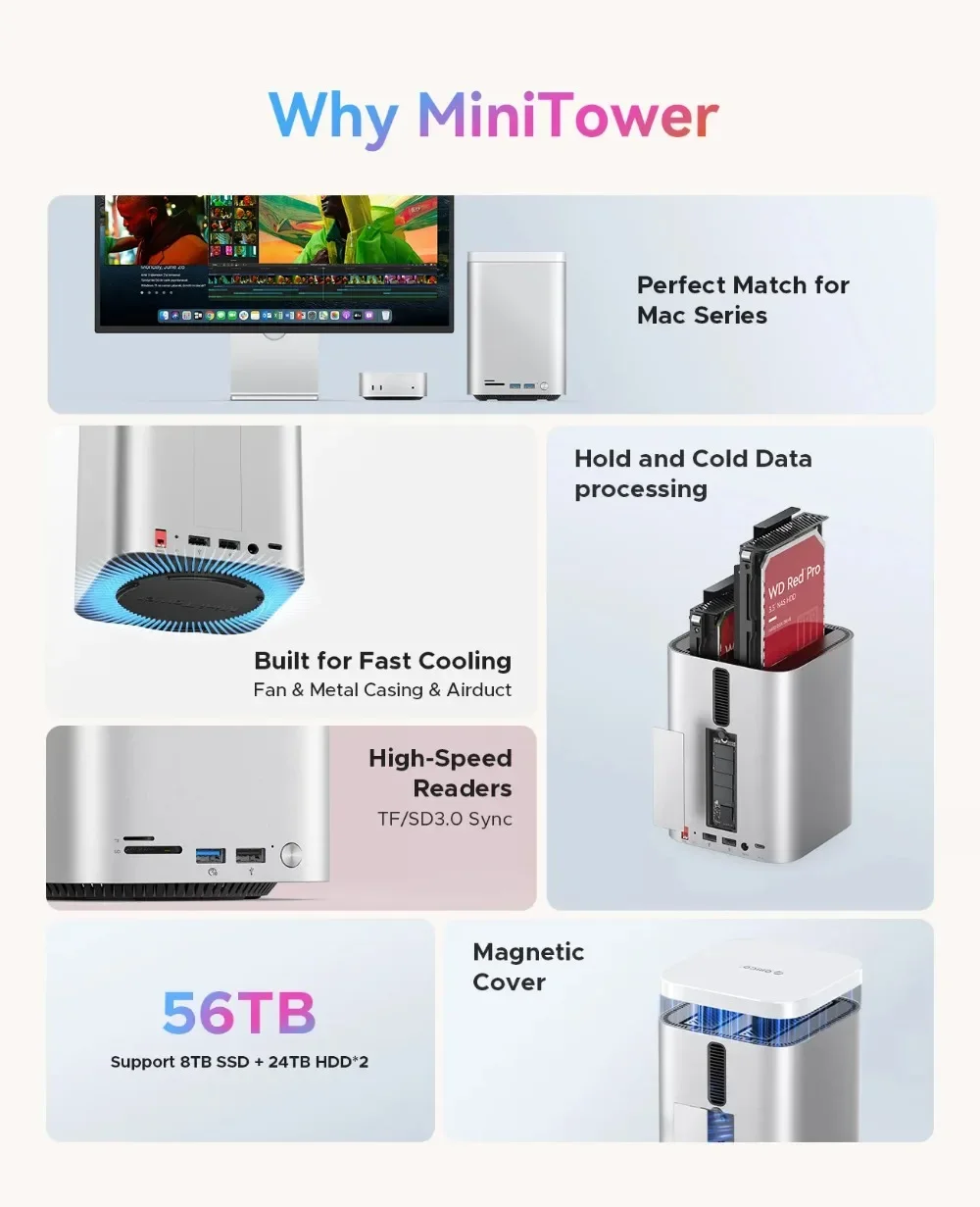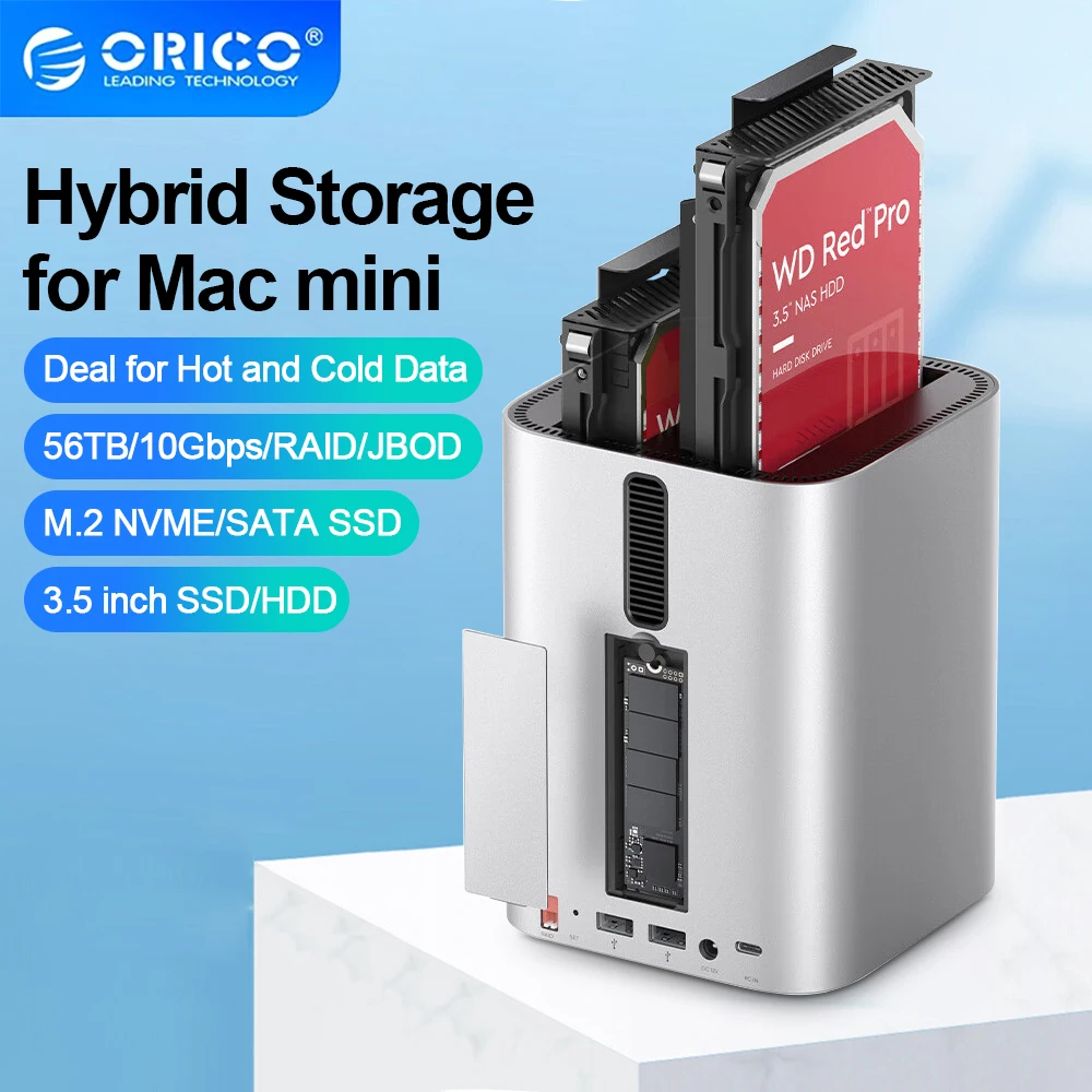 Comprar ORICO M.2 SSD carcasa de disco duro de 3,5 pulgadas Mini Tower Mac Mini M4 Dock tipo C estación de acoplamiento almacenamiento híbrido de escritorio DAS