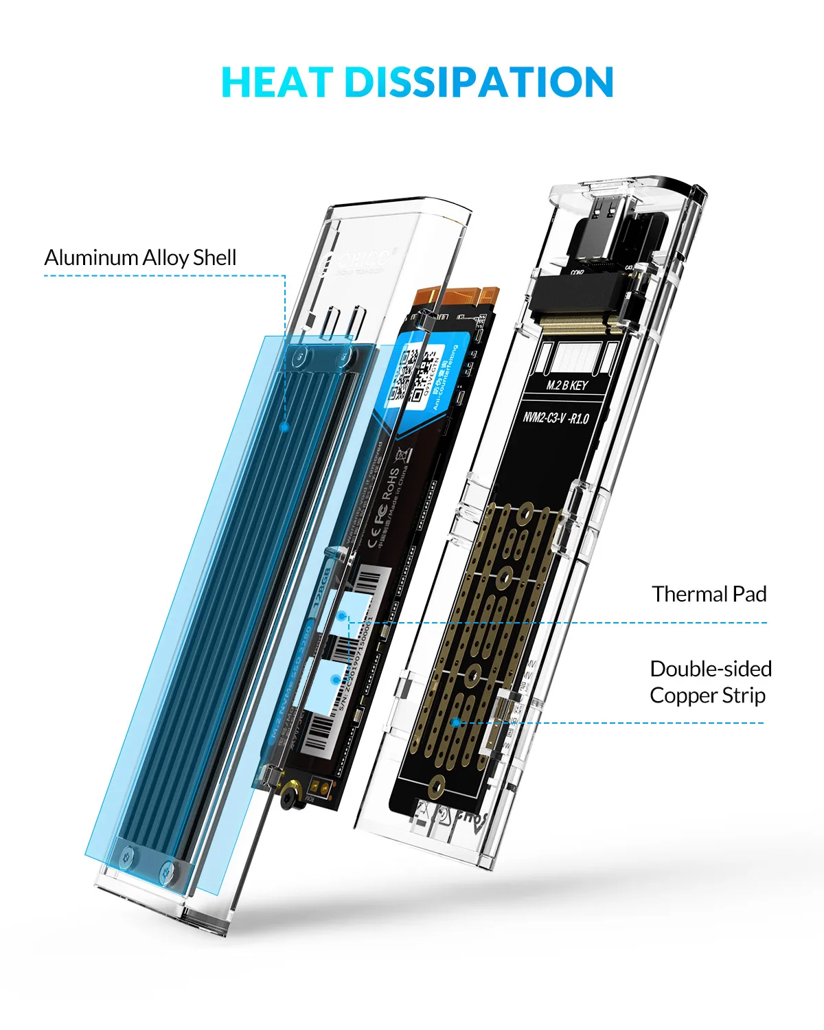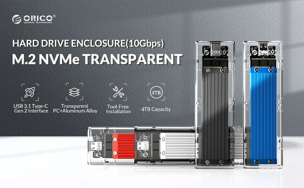 Comprar ORICO M2 SSD carcasa NVME SSD M.2 a tipo C carcasa de disco duro transparente para NVME PCIE NGFF SATA M Key SSD disco TCM2