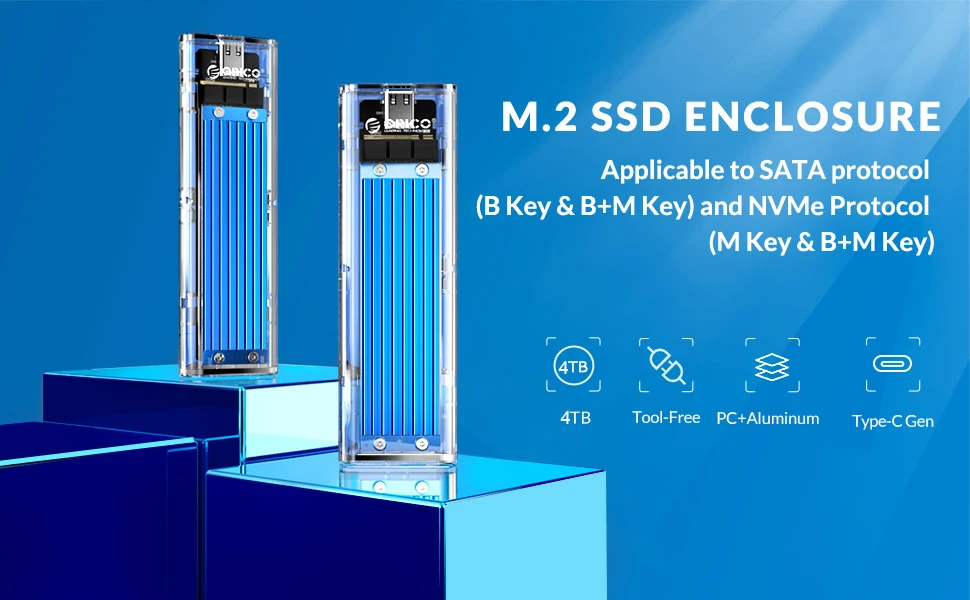 Compatible con NVME PCIe M Key/M + B Key SSD y NGFF SATA protocolo B Key/M + B Key SSD, con cable de 50cm tipo C a tipo C y cable de 50cm tipo C a usb3.0, color azul.