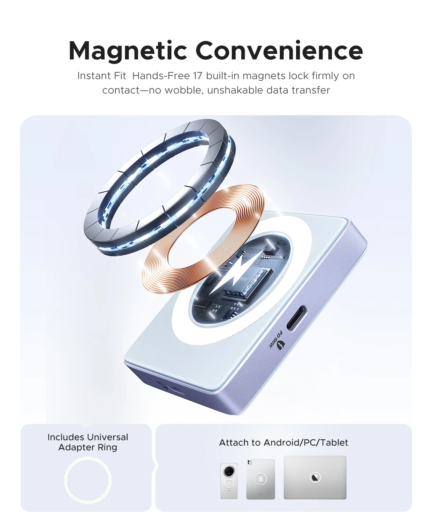 Cubierta trasera magnética:admite succión magnética de dispositivos Apple (si el teléfono móvil no admite succión magnética, el producto se enviará con un anillo magnético para succión magnética)