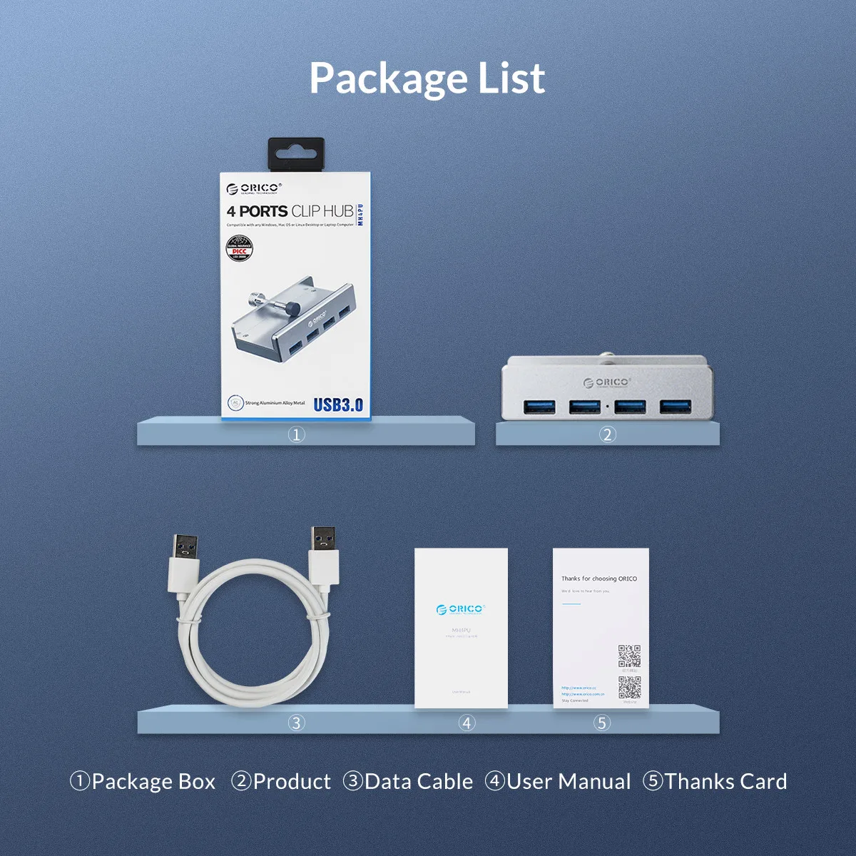 ORICO MH4PU 4 USB HUB 3.0 con fuente de alimentación, transmisión de datos de 5GBPS de expansión de alta velocidad adecuada para accesorios de computadora portátil
