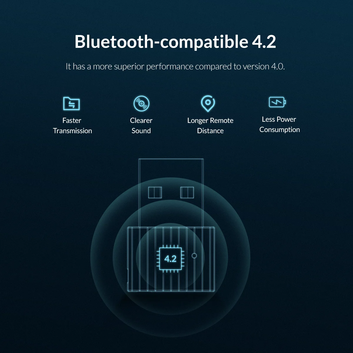 Comprar ORICO-Mini adaptador inalámbrico de música para ordenador portátil y de escritorio, Compatible con USB Dongle, Bluetooth 4,2 + EDR, transmisor de Audio