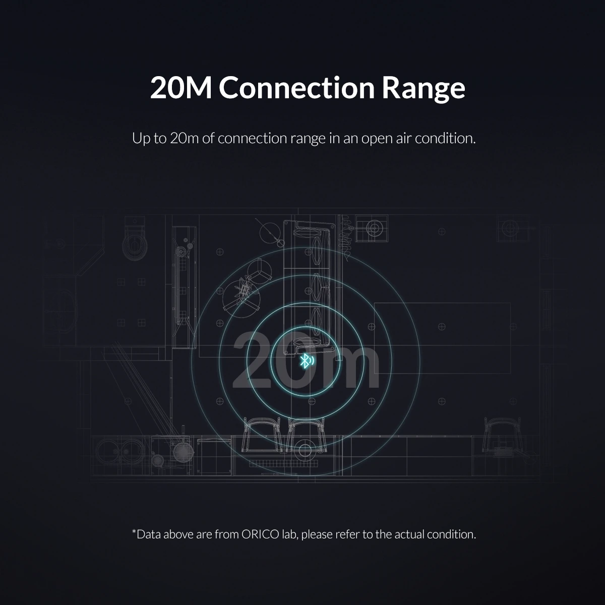 Alcance de conexión de hasta 20m (los datos anteriores son del laboratorio ORICO, consulte la condición real).