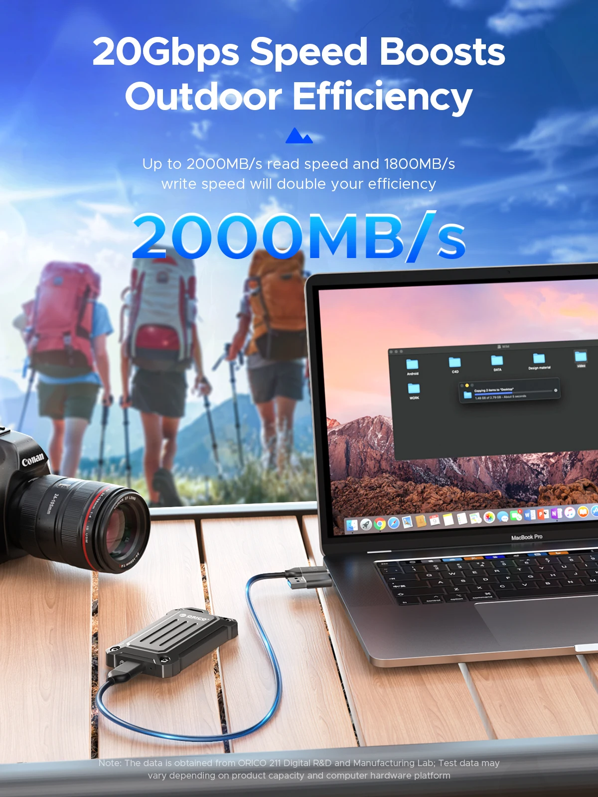 La velocidad máxima de lectura es de 2000 MB/s, lo que puede completar los requisitos de transmisión de datos más rápidamente.(PD: debe probarse en la interfaz de velocidad correspondiente en el lado del host)