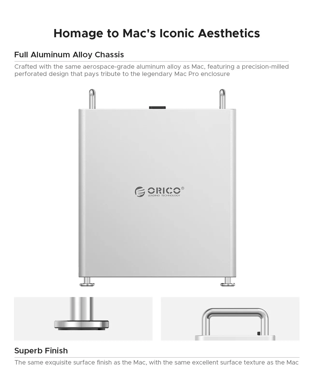 ORICO pensó en este problema durante la I+D y el diseño, la señal inalámbrica de MacMini se emite a través del plástico en la parte inferior y el material de MacMini es aleación de aluminio, el diseño de ORICO es que la parte de plástico de MacMini está expuesta todo el tiempo, por lo que no afectará la señal; y no afectará los conductos de aire de disipación de calor.