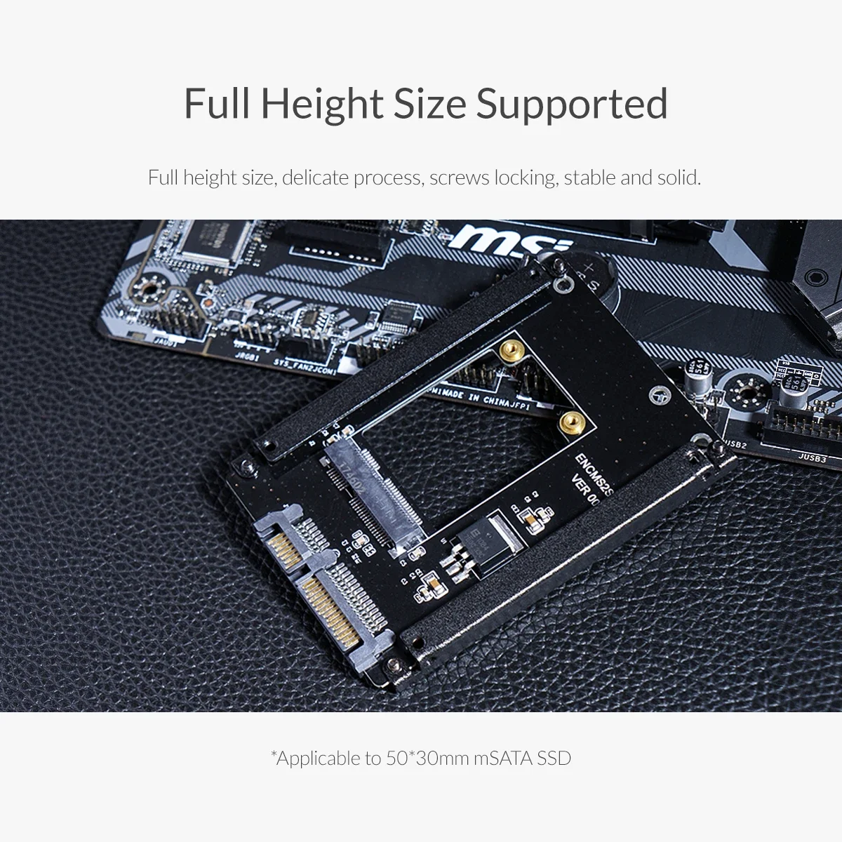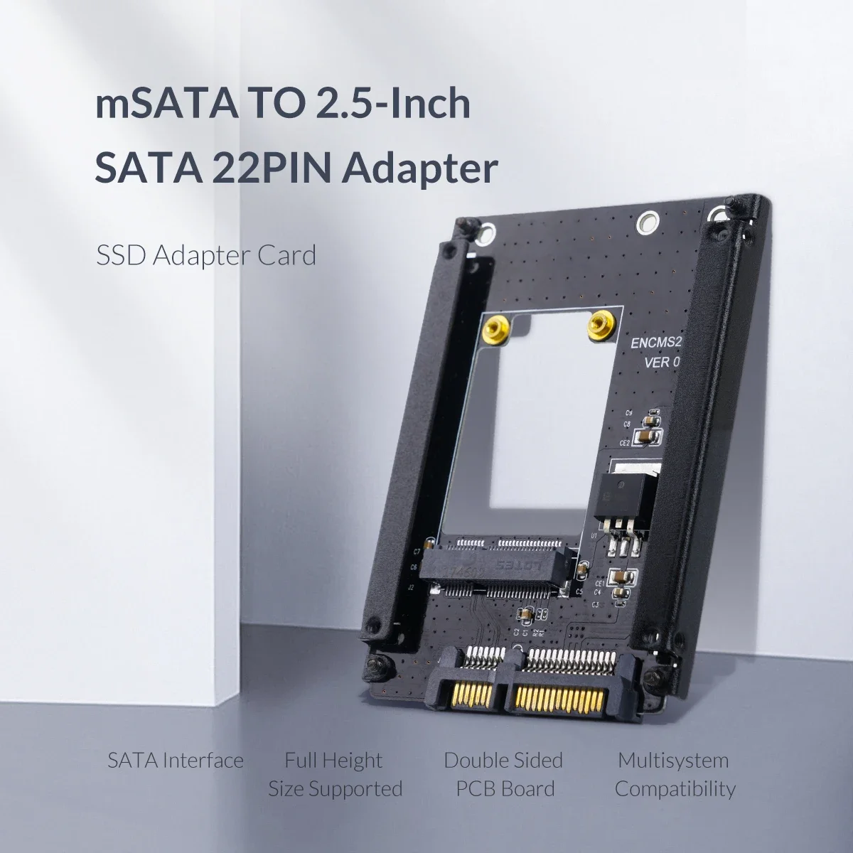 Tarjeta adaptadora SSDTamaño de altura completa admitidoPara SSD de 25X30 mSATAInterfaz: mSATA a 2,5 pulgadas SATA 22PIN
