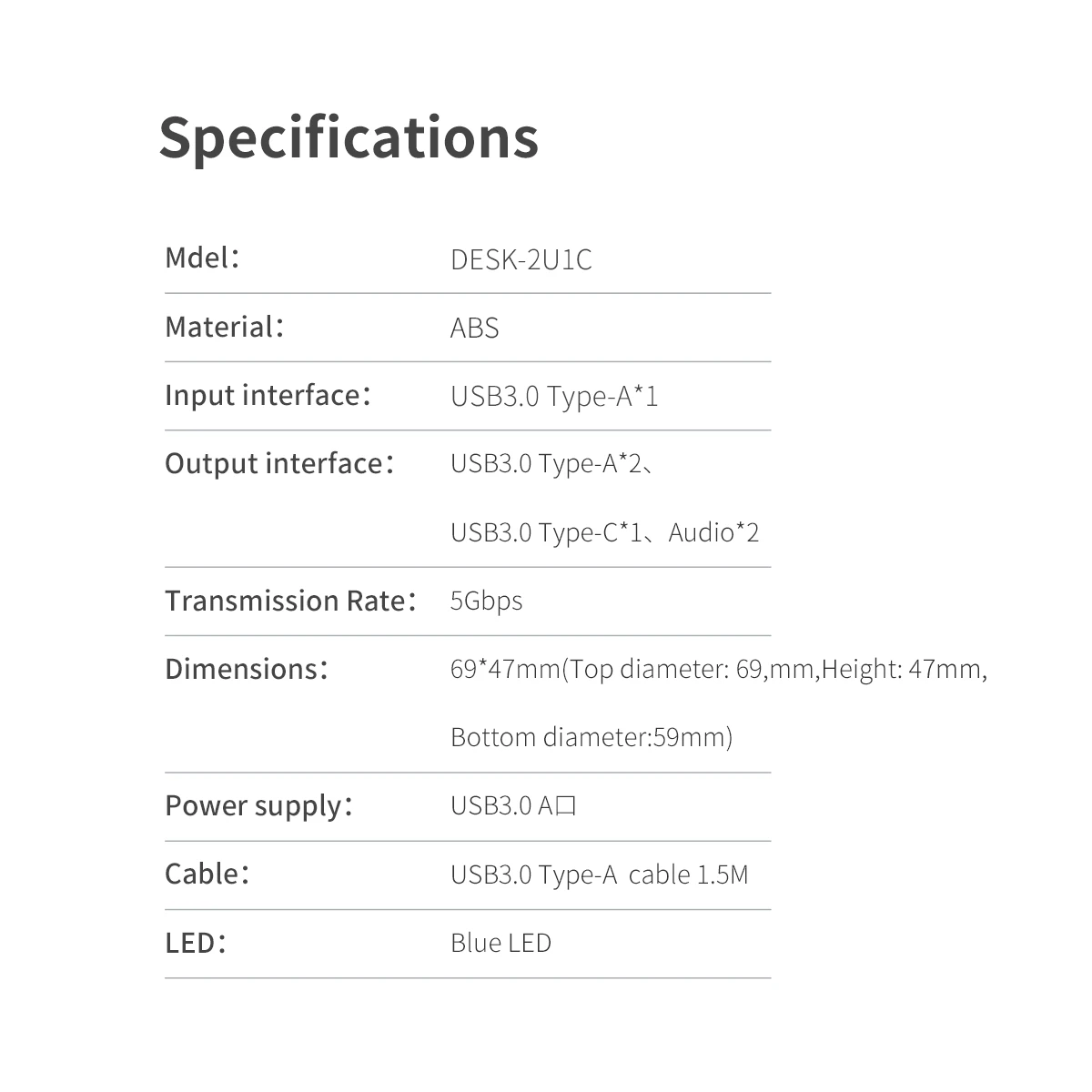 Comprar ORICO-ojal de escritorio con USB 3,0, HUB con auriculares, puerto de micrófono, lector de tarjetas tipo C, adaptador OTG, divisor para portátil, accesorios