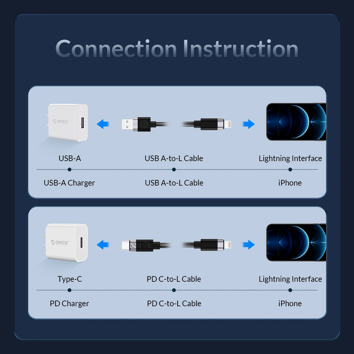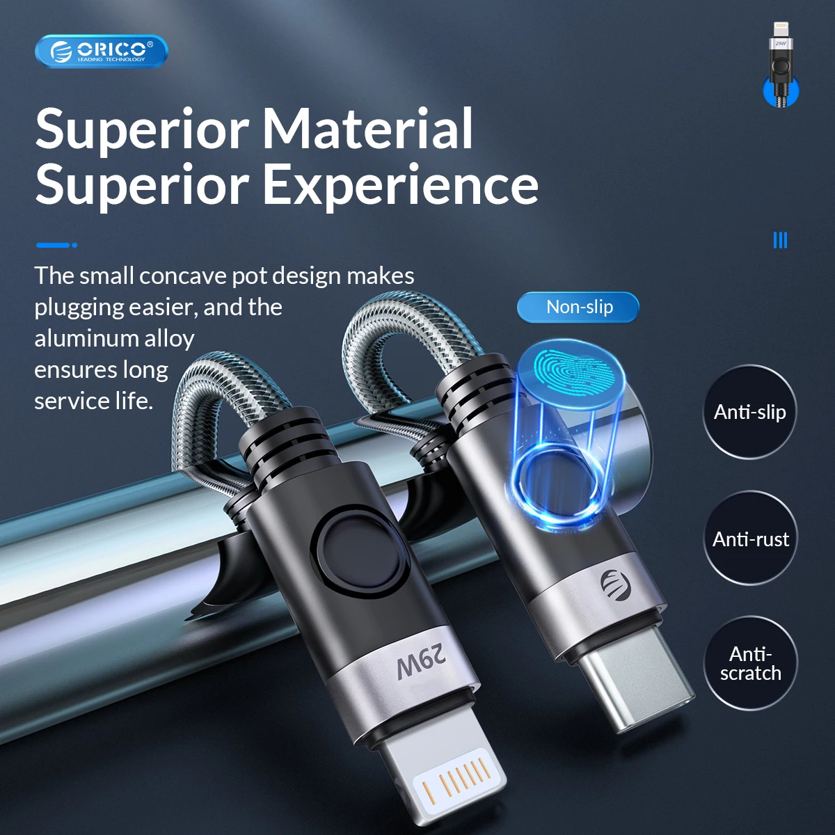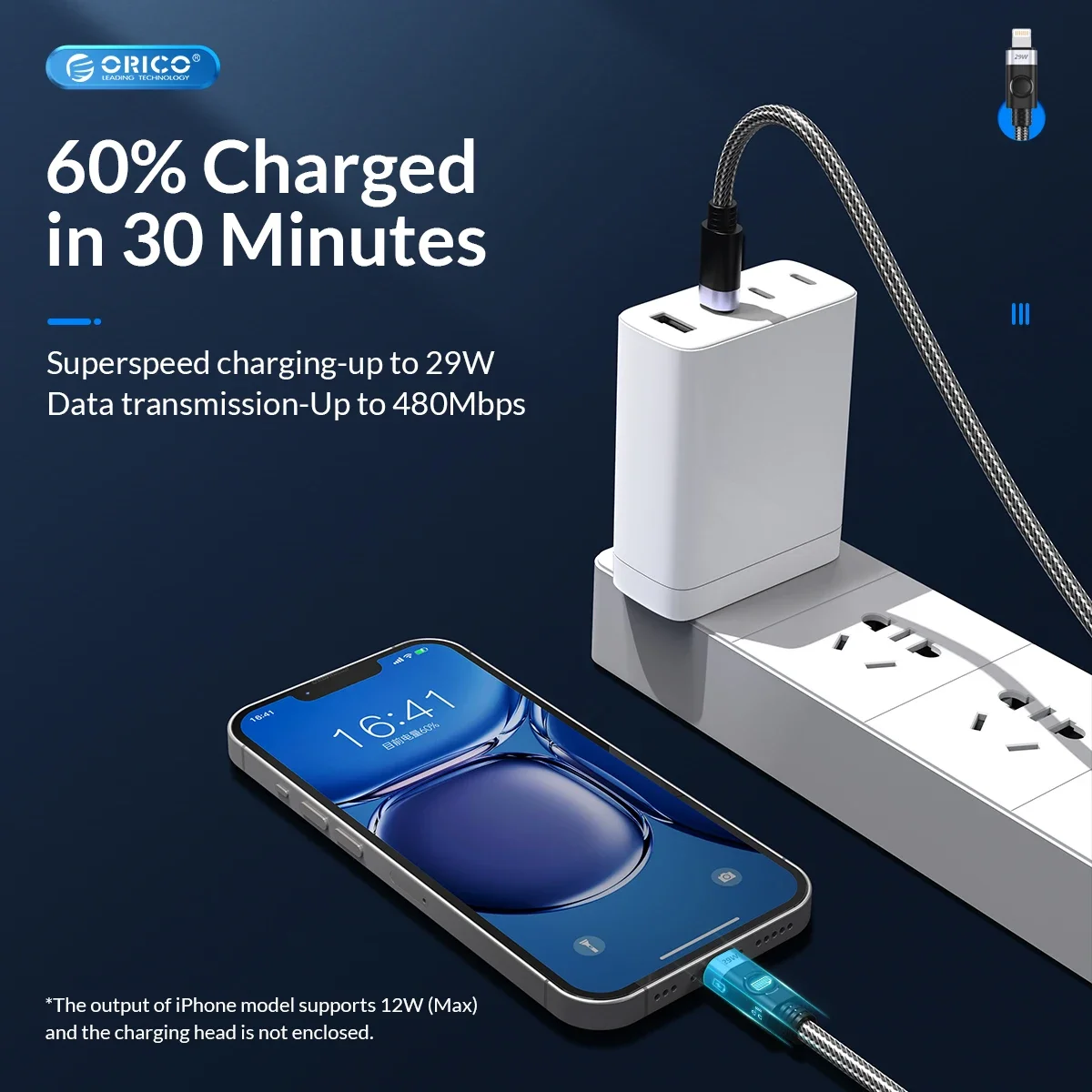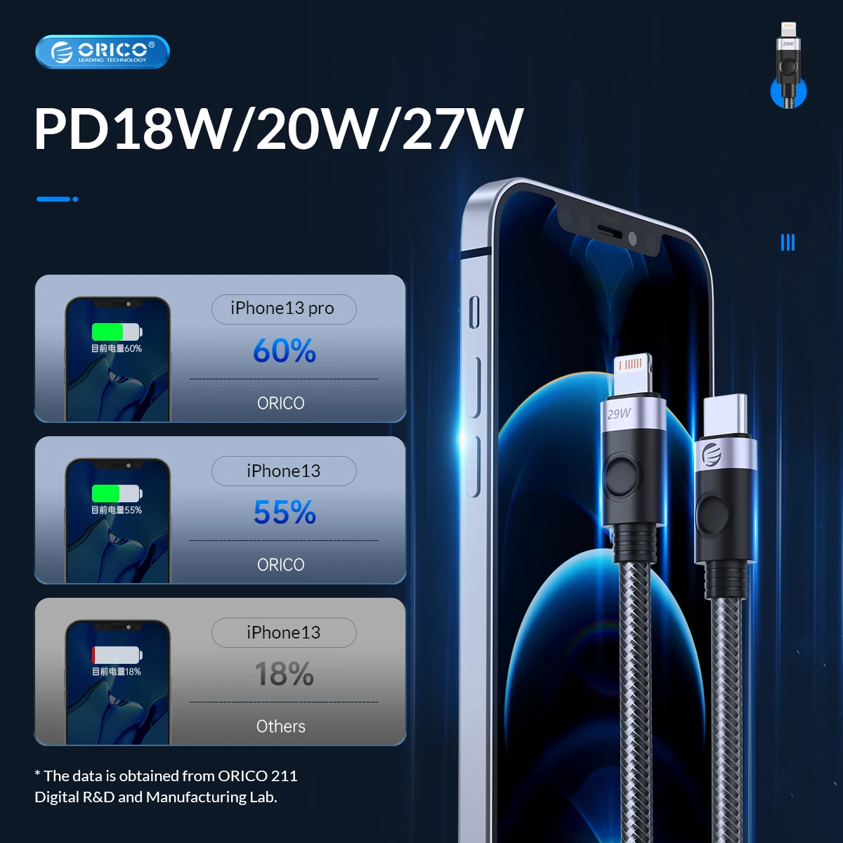 Comprar ORICO PD 29W USB C a Lightning Cable MacBook USB C Carga rápida para iPhone Cargador Cable tipo C para iPhone 13 12 Pro Max