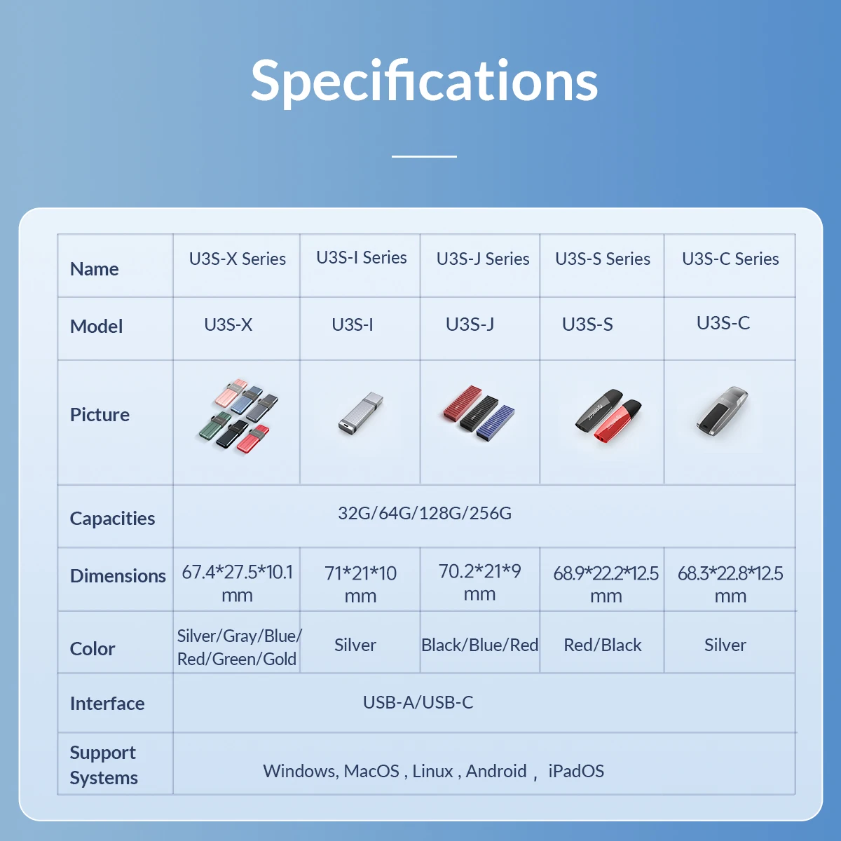 Comprar ORICO-Pendrive USB 3,2, unidad Flash de 260 MB/S, 256GB, 128GB, 64GB, 32GB, tipo C, para Android Micro/PC