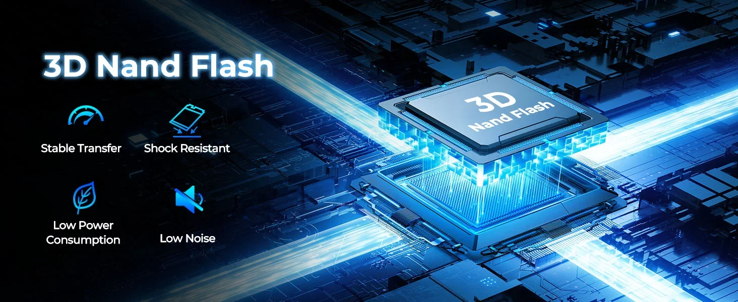 A diferencia de los chips NAND planares existentes, el flash 3D NAND es un tipo de memoria flash en la que las celdas de memoria se apilan verticalmente en múltiples capas.3D NAND está desarrollado para superar las limitaciones de densidad del NAND plano 2D y, por lo tanto, puede ofrecer un mayor nivel de rendimiento y resistencia. Reducir la interferencia de celda a celda para una mayor confiabilidad.