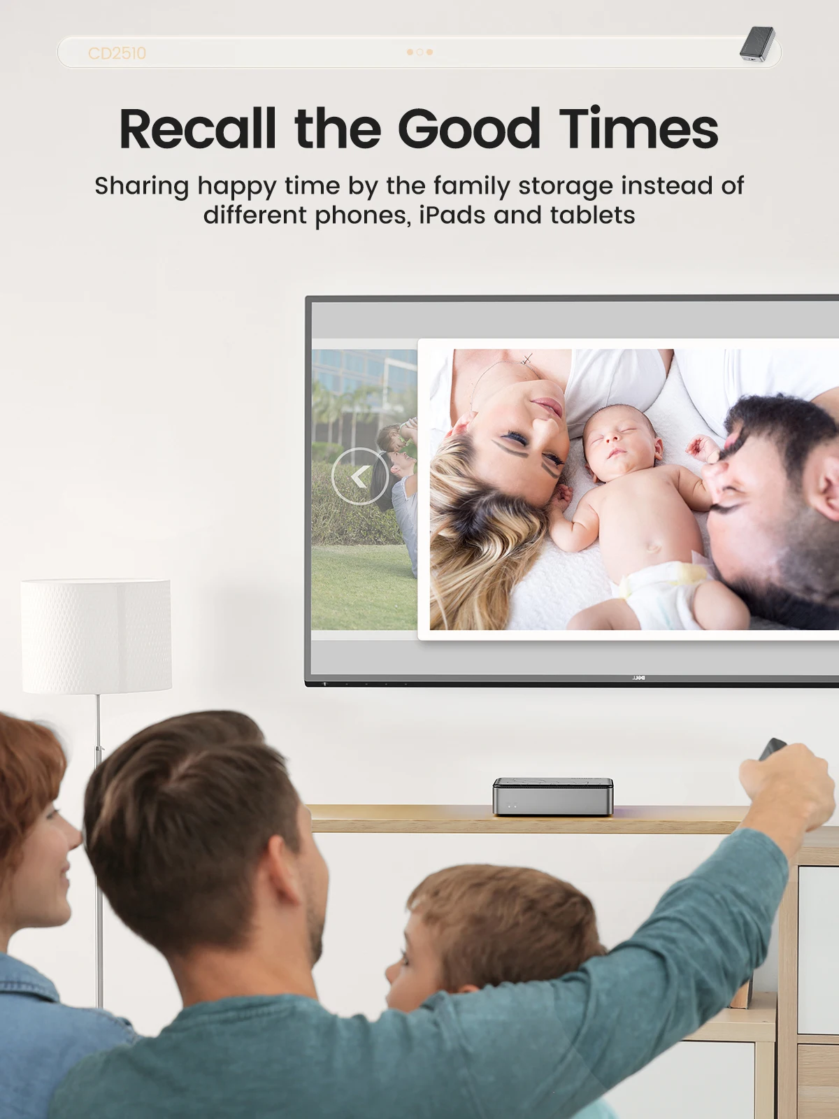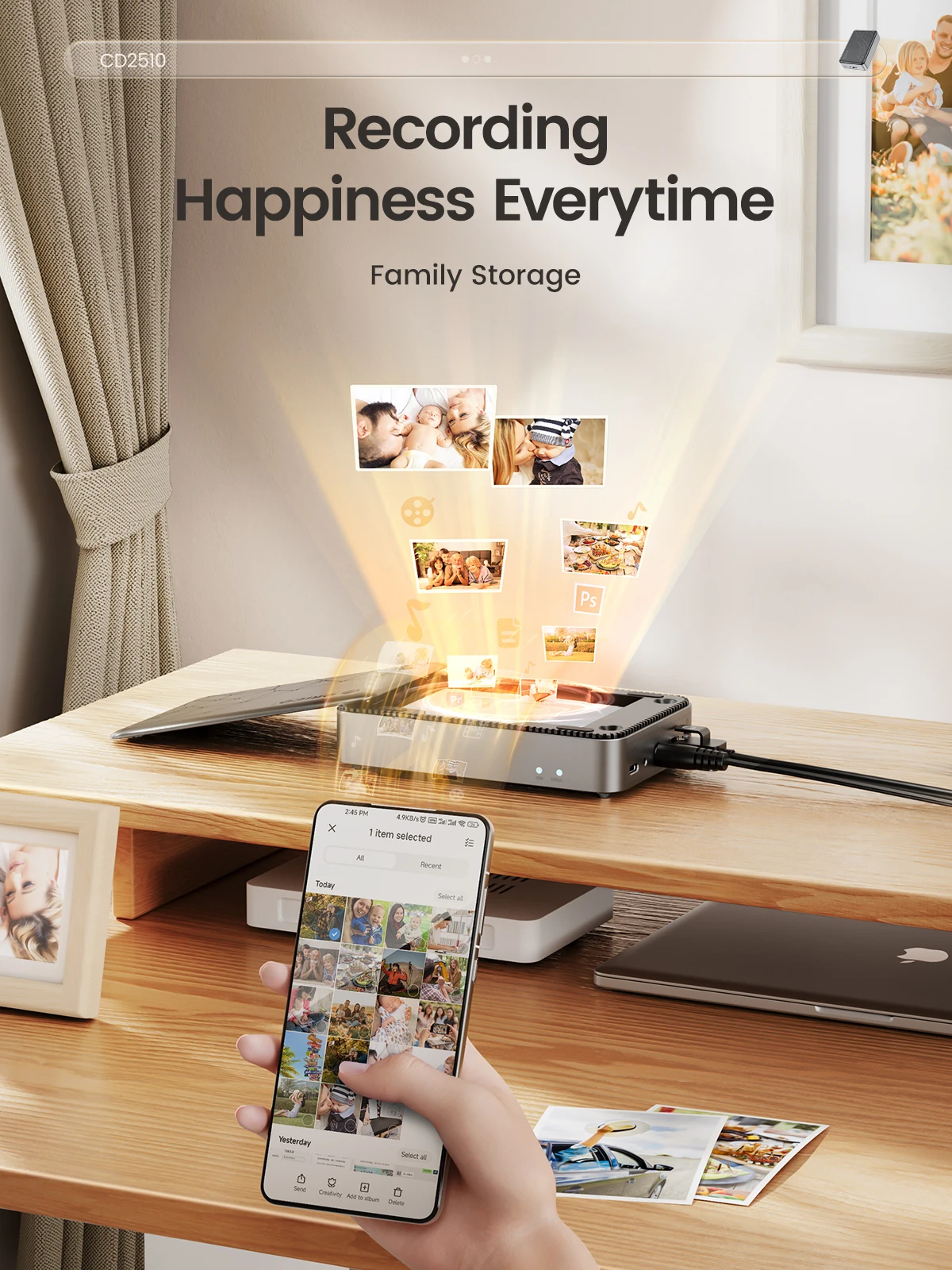 Compartir momentos felices por el almacenamiento familiar en lugar de diferentes teléfonos, iPads y tabletas