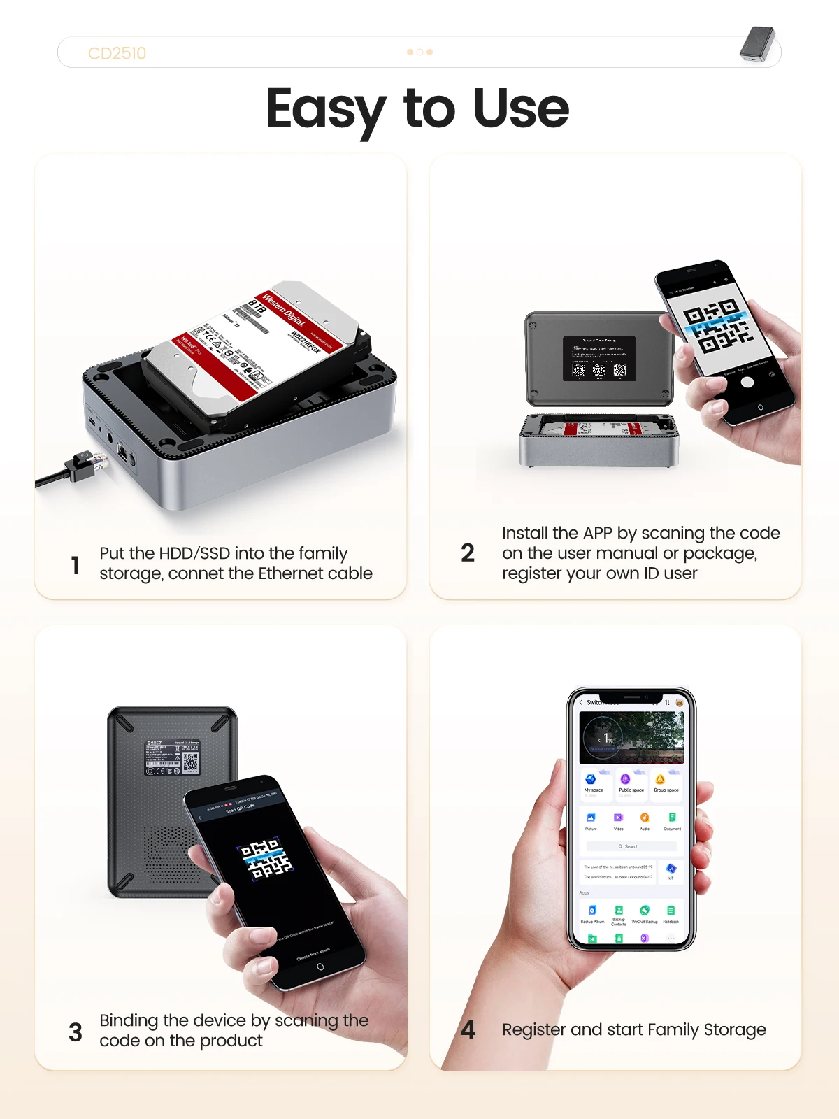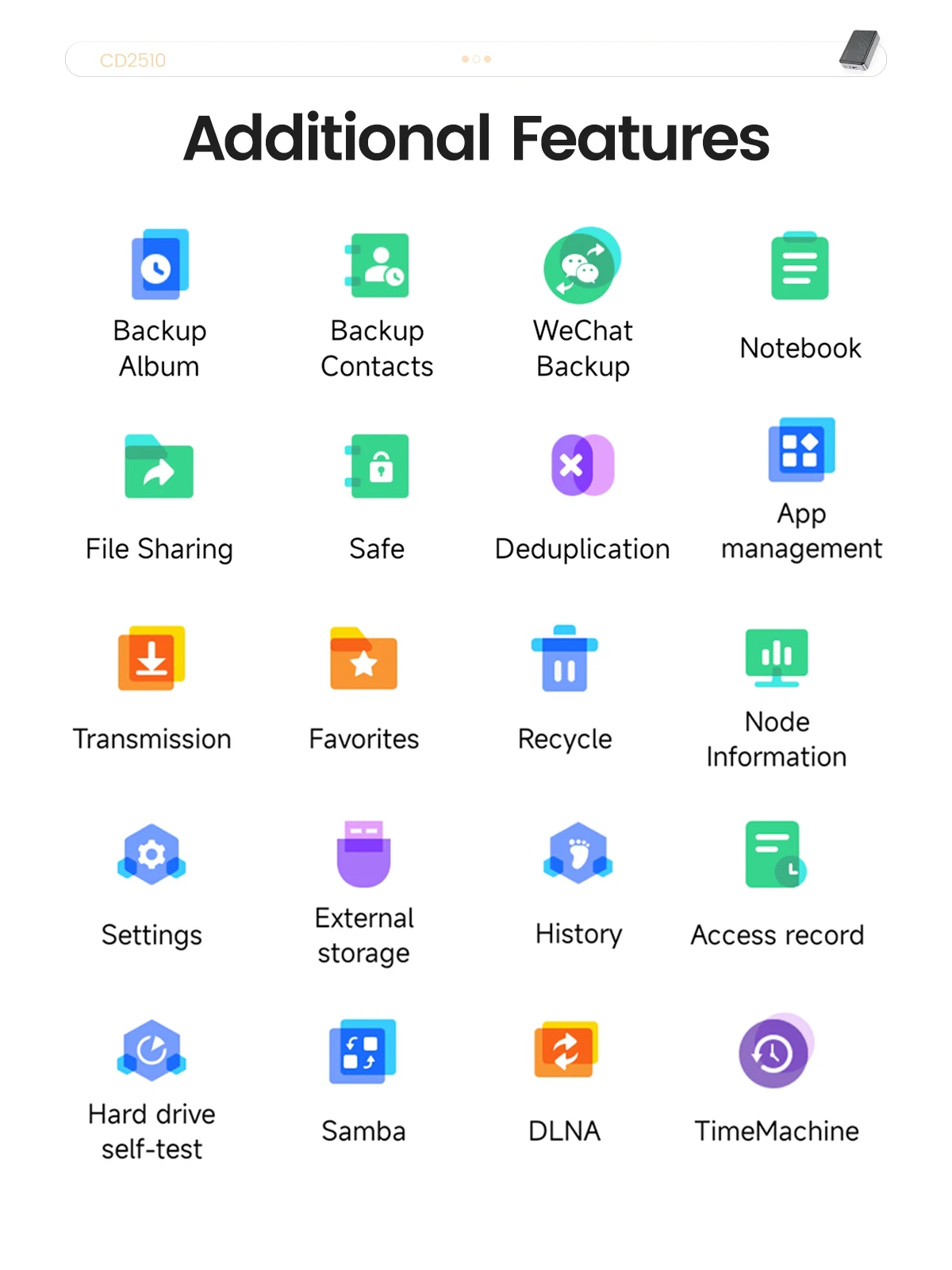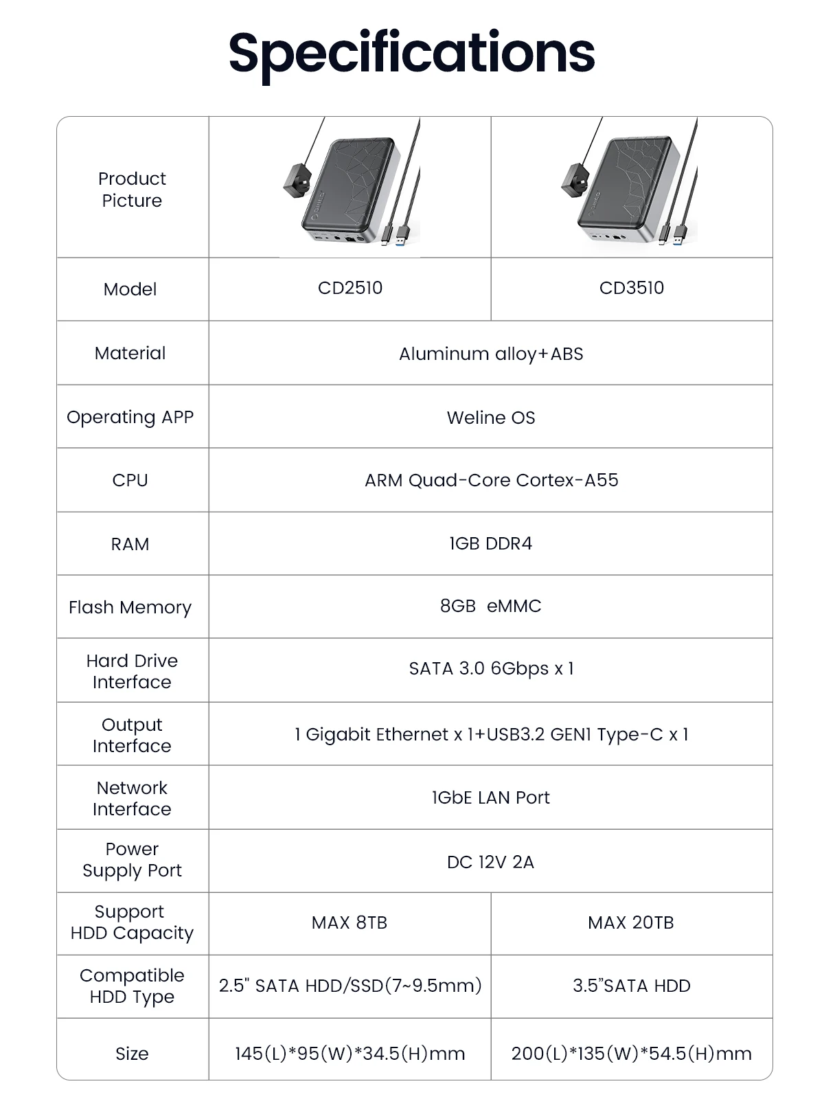 El almacenamiento personal de ORICO es para usuarios generales, después de cargar un disco duro SATA y conectarse a la red doméstica, puede almacenar todo el contenido digital en su propio dispositivo de almacenamiento privado.