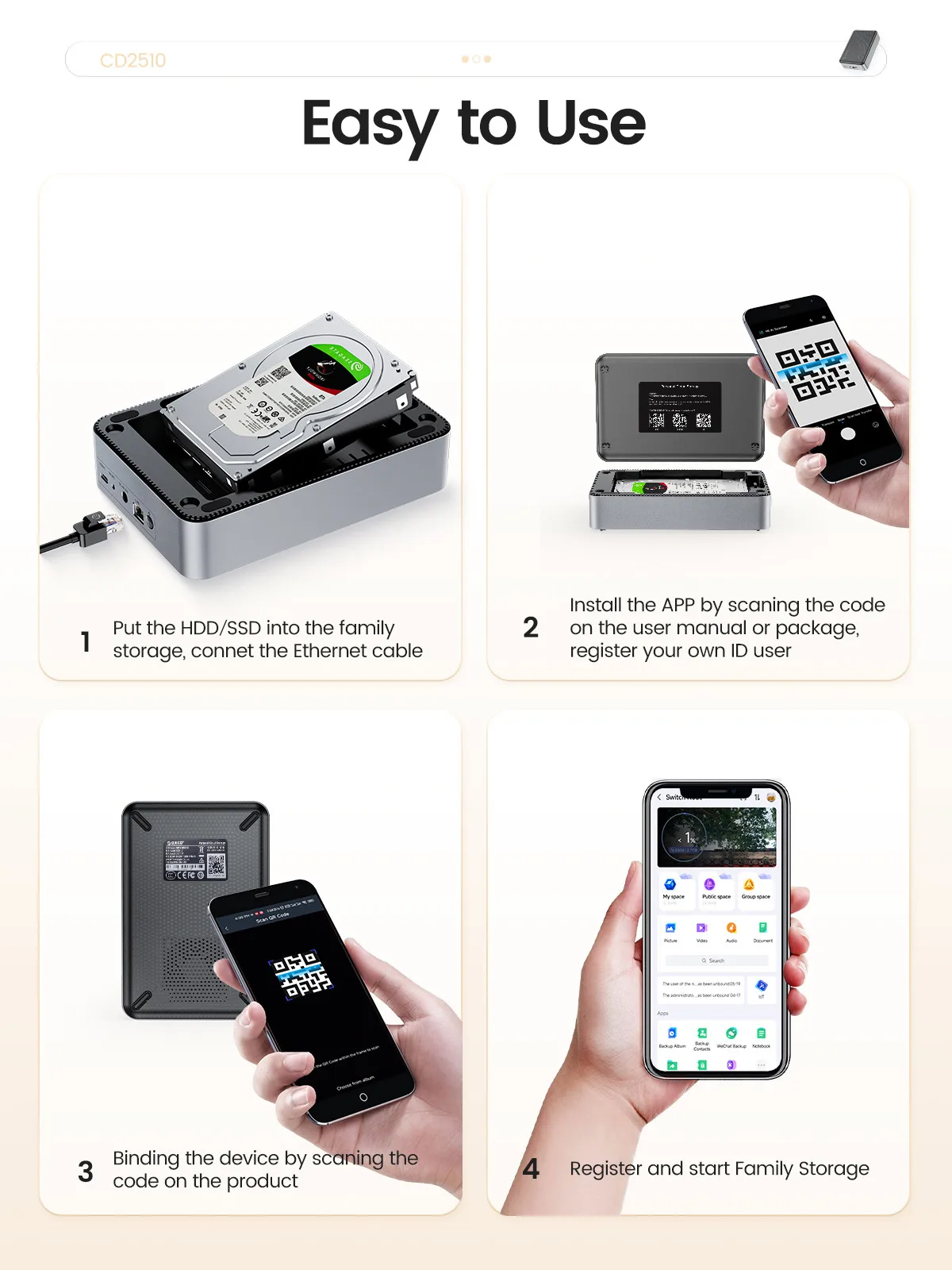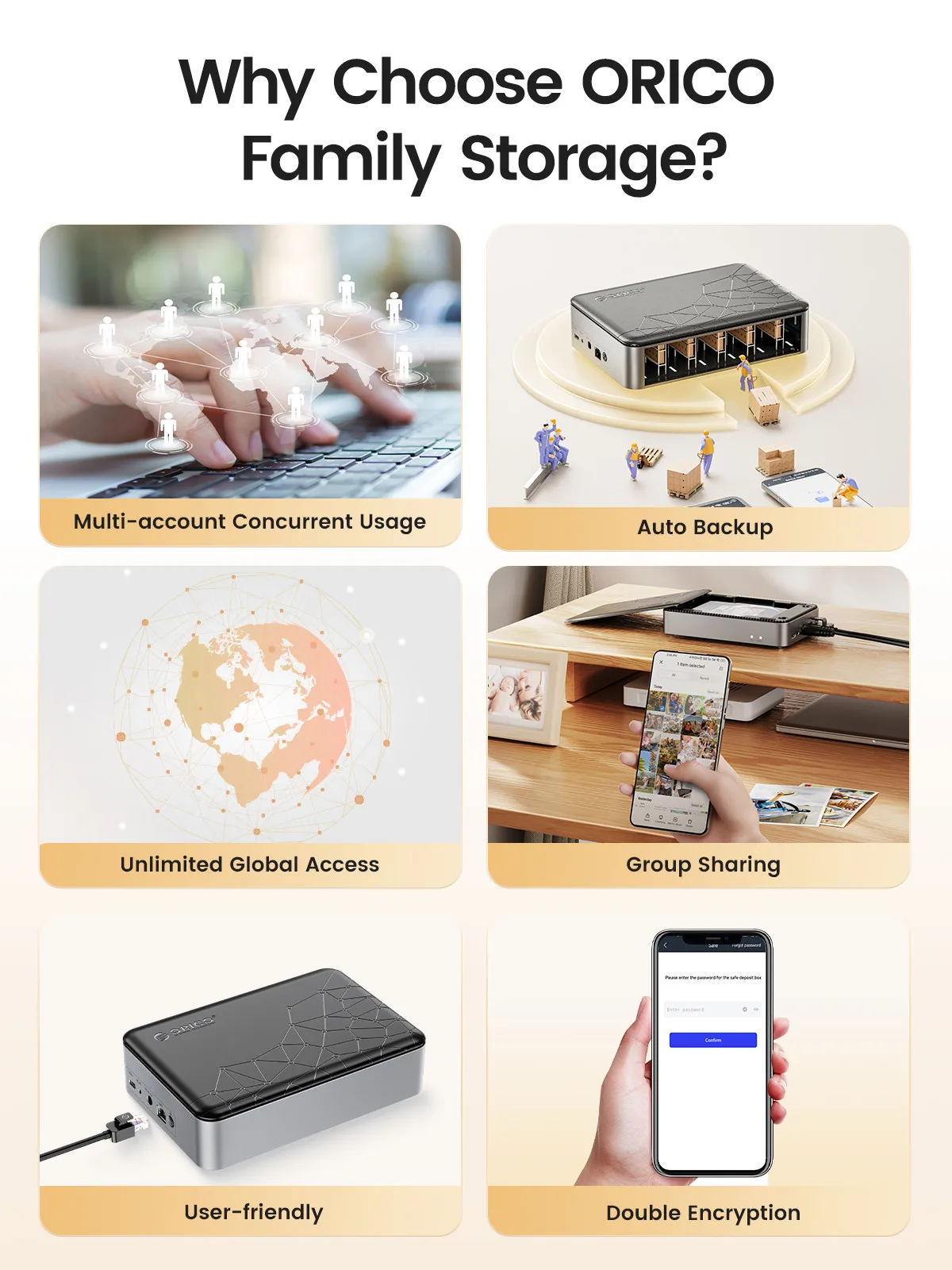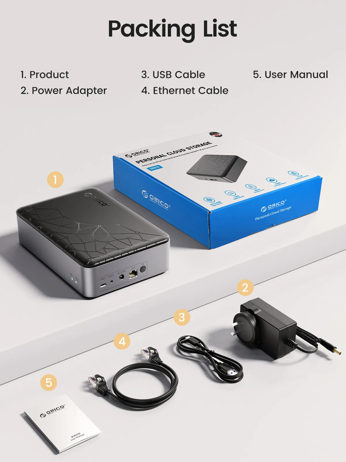 El almacenamiento personal ORICO es para usuarios generales; después de cargar un disco duro SATA y conectarse a la red doméstica, puede almacenar todo el contenido digital en su propio dispositivo de almacenamiento privado.