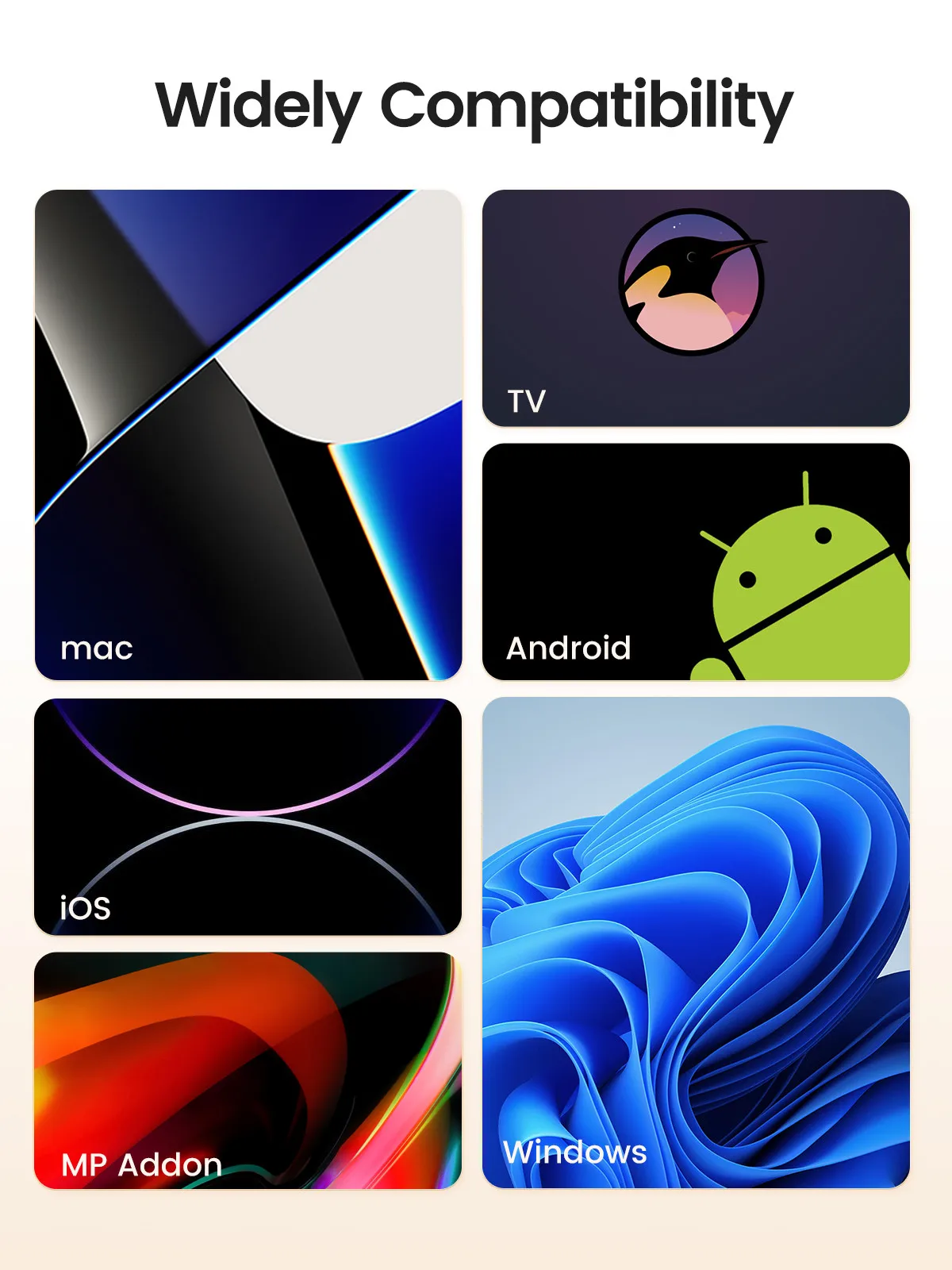 Con soporte de plataforma completa para Android, iOS, Mac, Windows, TV y más