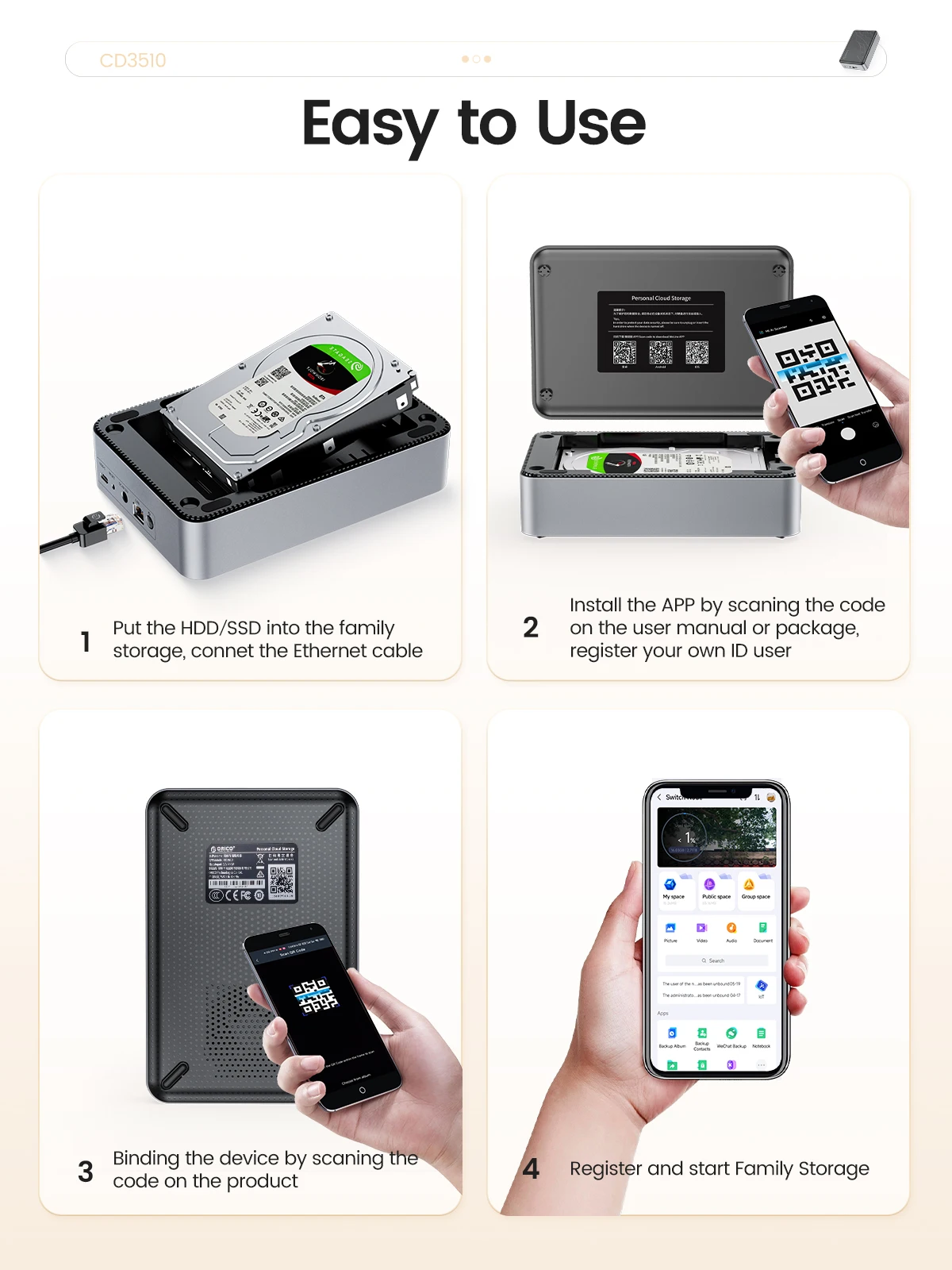 El almacenamiento personal de ORICO es para usuarios generales, después de cargar un disco duro SATA y conectarse a la red doméstica, puede almacenar todo el contenido digital en su propio dispositivo de almacenamiento privado.