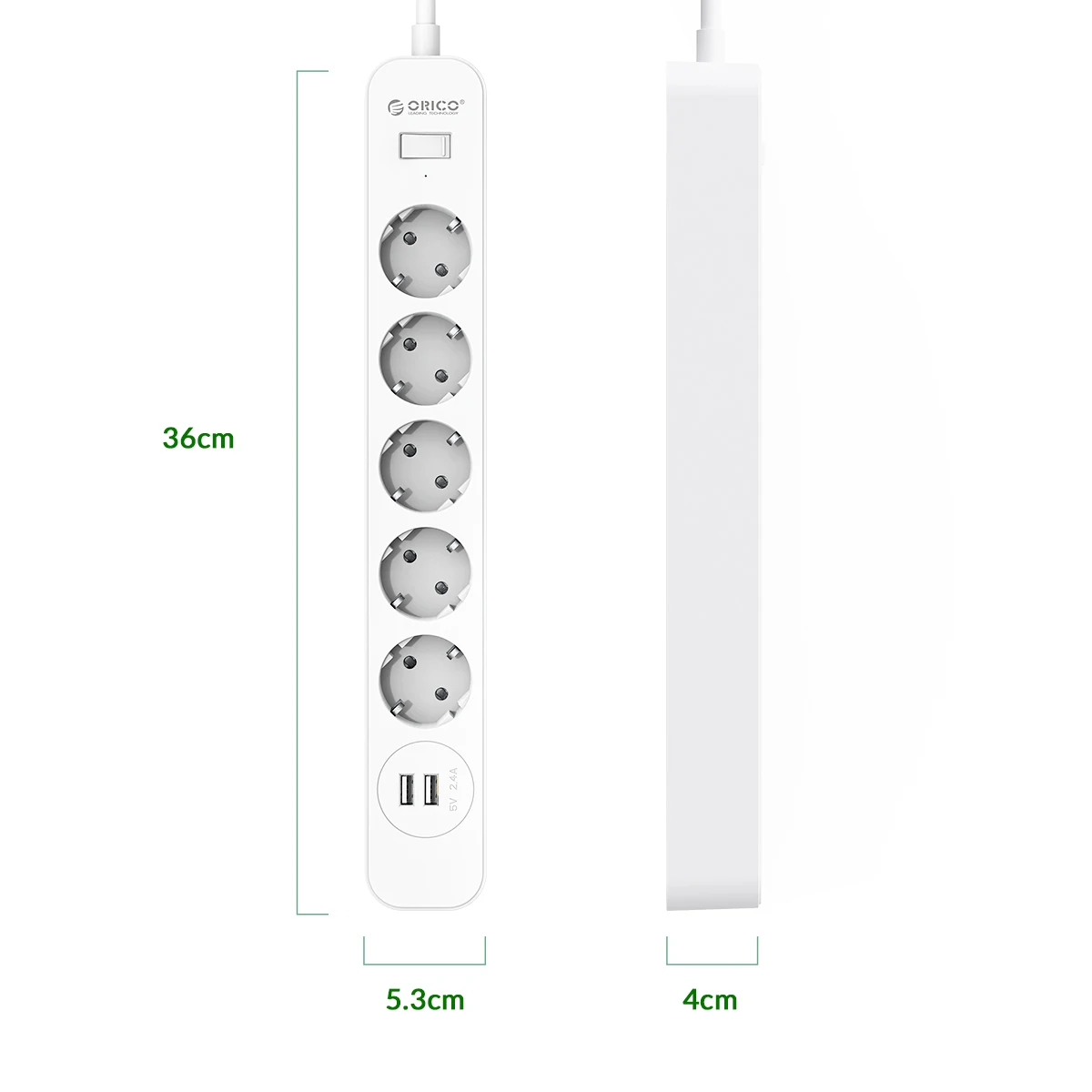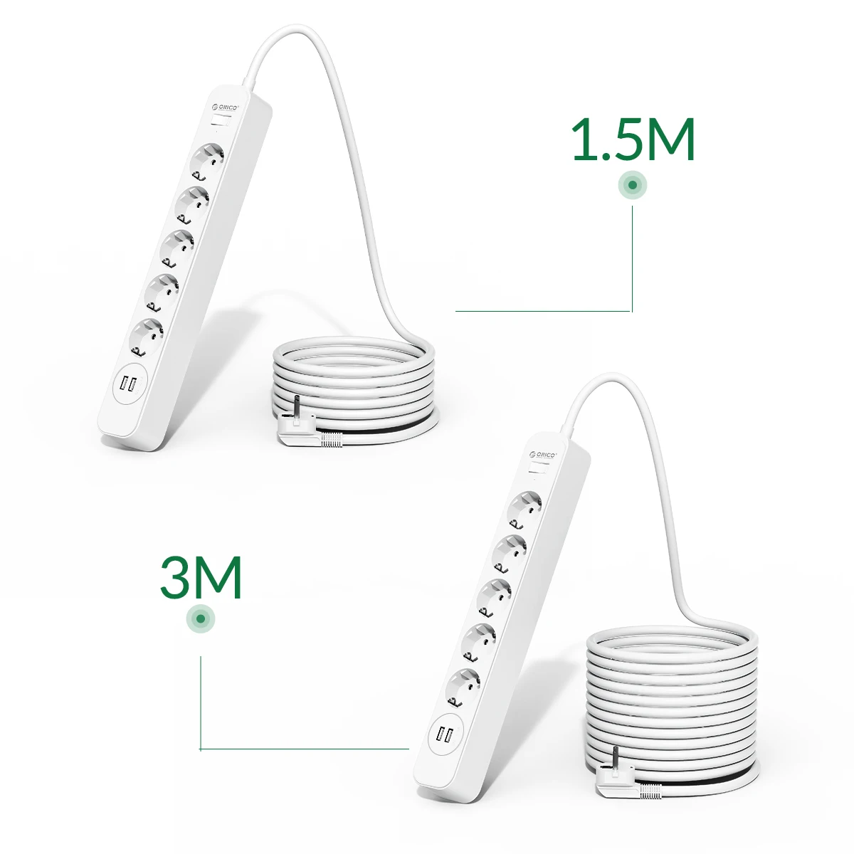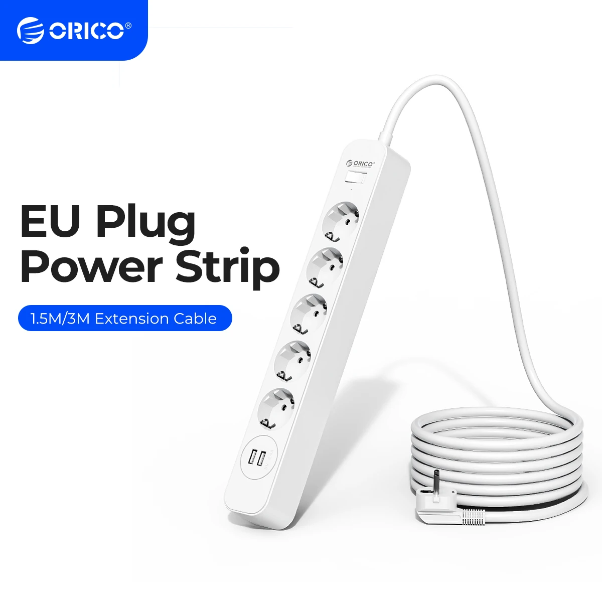 Comprar ORICO-regleta de alimentación de 3m, Cable de extensión de enchufe eléctrico con 2 puertos USB para el hogar, Protector contra sobretensiones, filtro de red