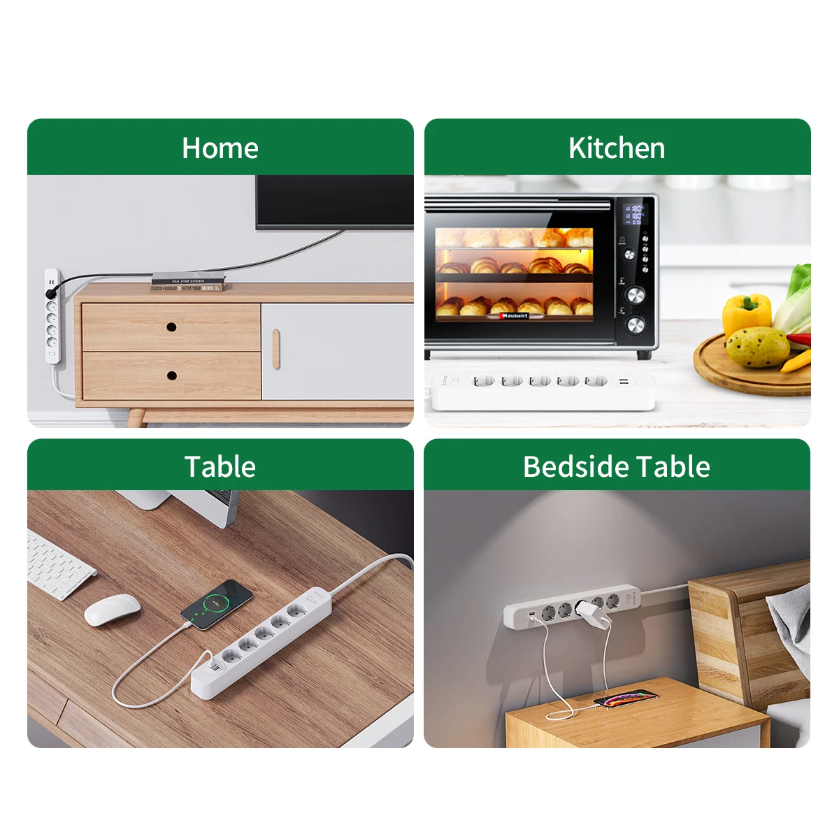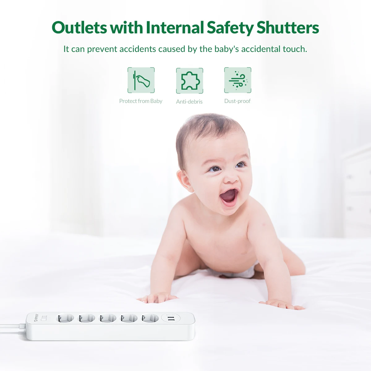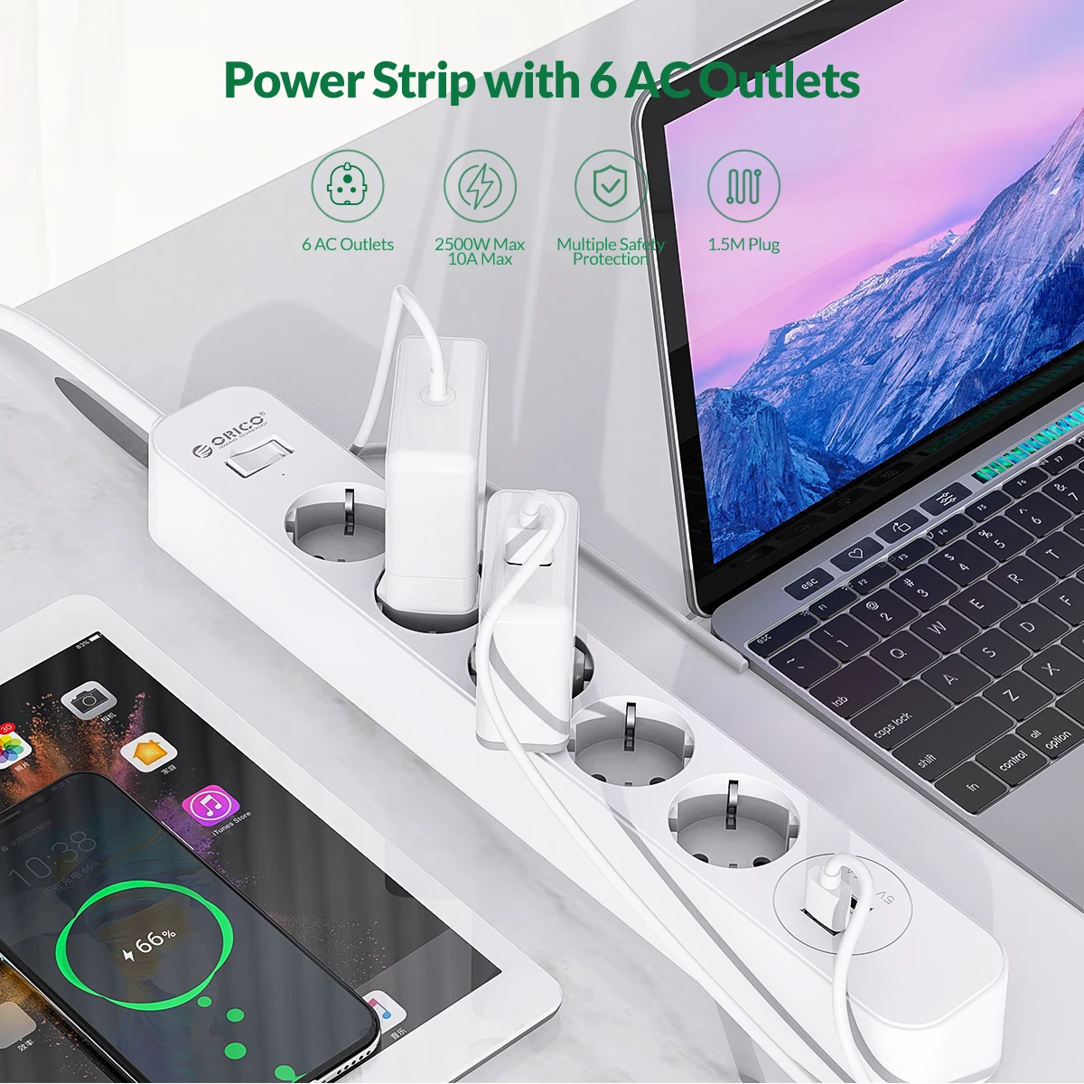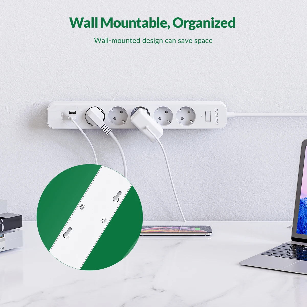 Comprar ORICO-regleta de alimentación de 3m, Cable de extensión de enchufe eléctrico con 2 puertos USB para el hogar, Protector contra sobretensiones, filtro de red