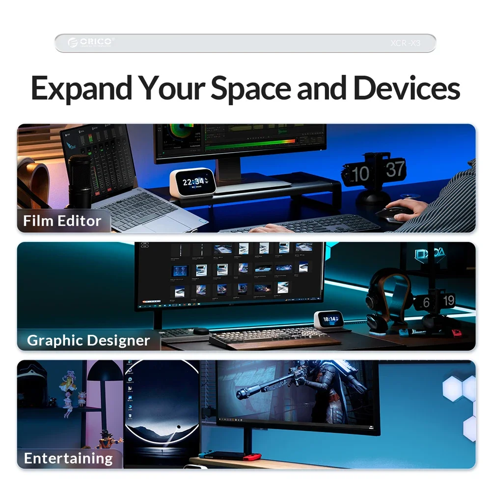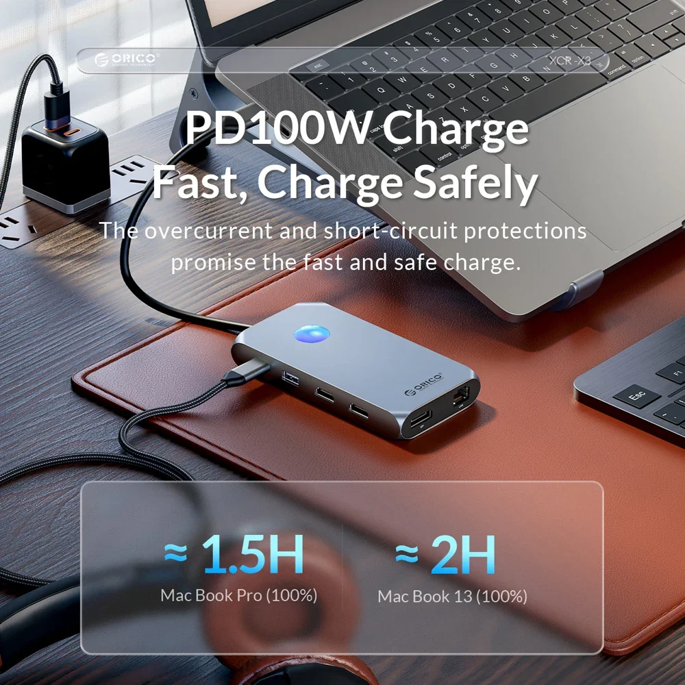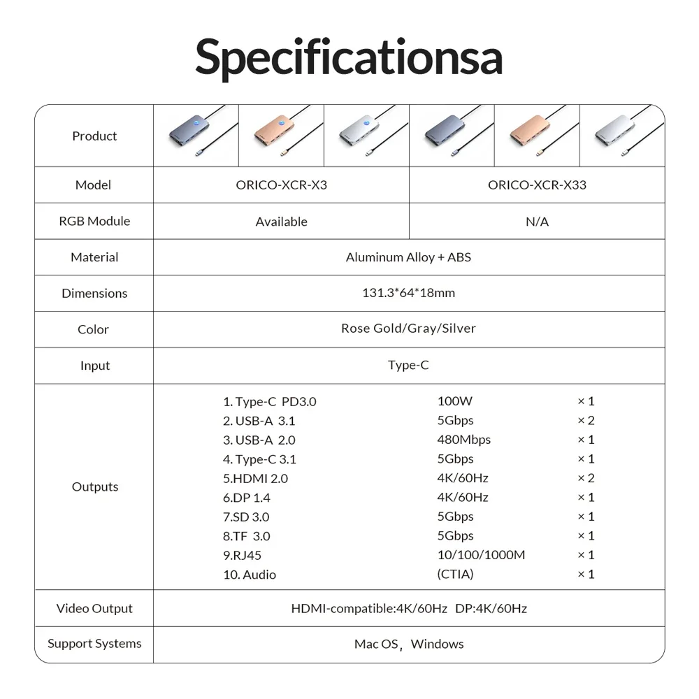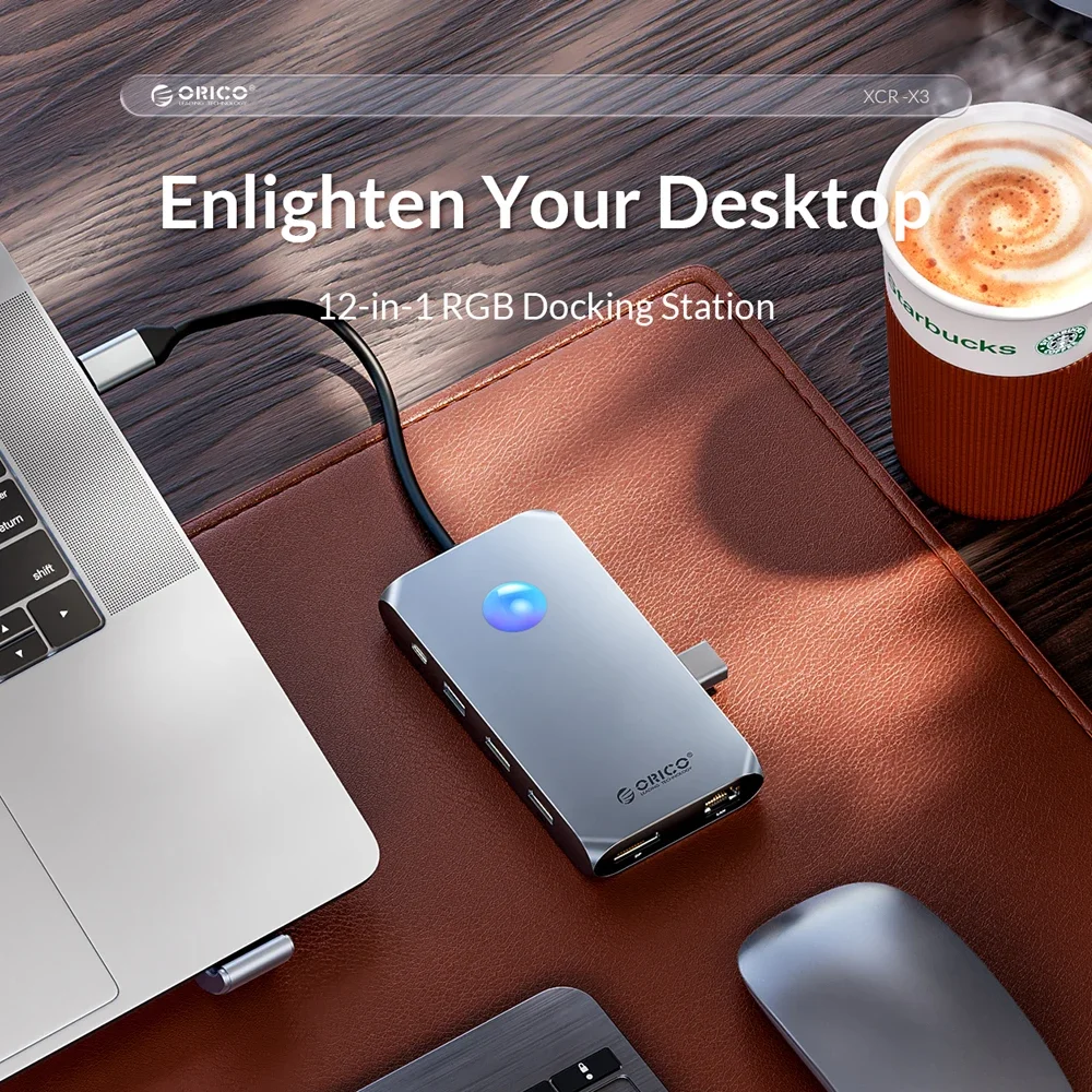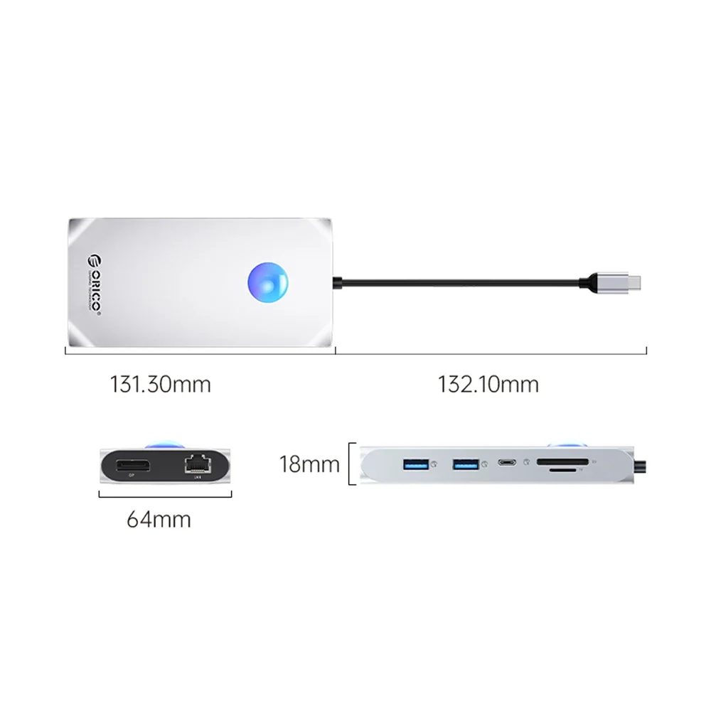 ORICO RGB USB C estación de acoplamiento con 4K60Hz Dual HDMI compatible VGA DP Ethernet 100W PD Hub SD/TF 3,5mm para ordenador portátil Macbook Pro