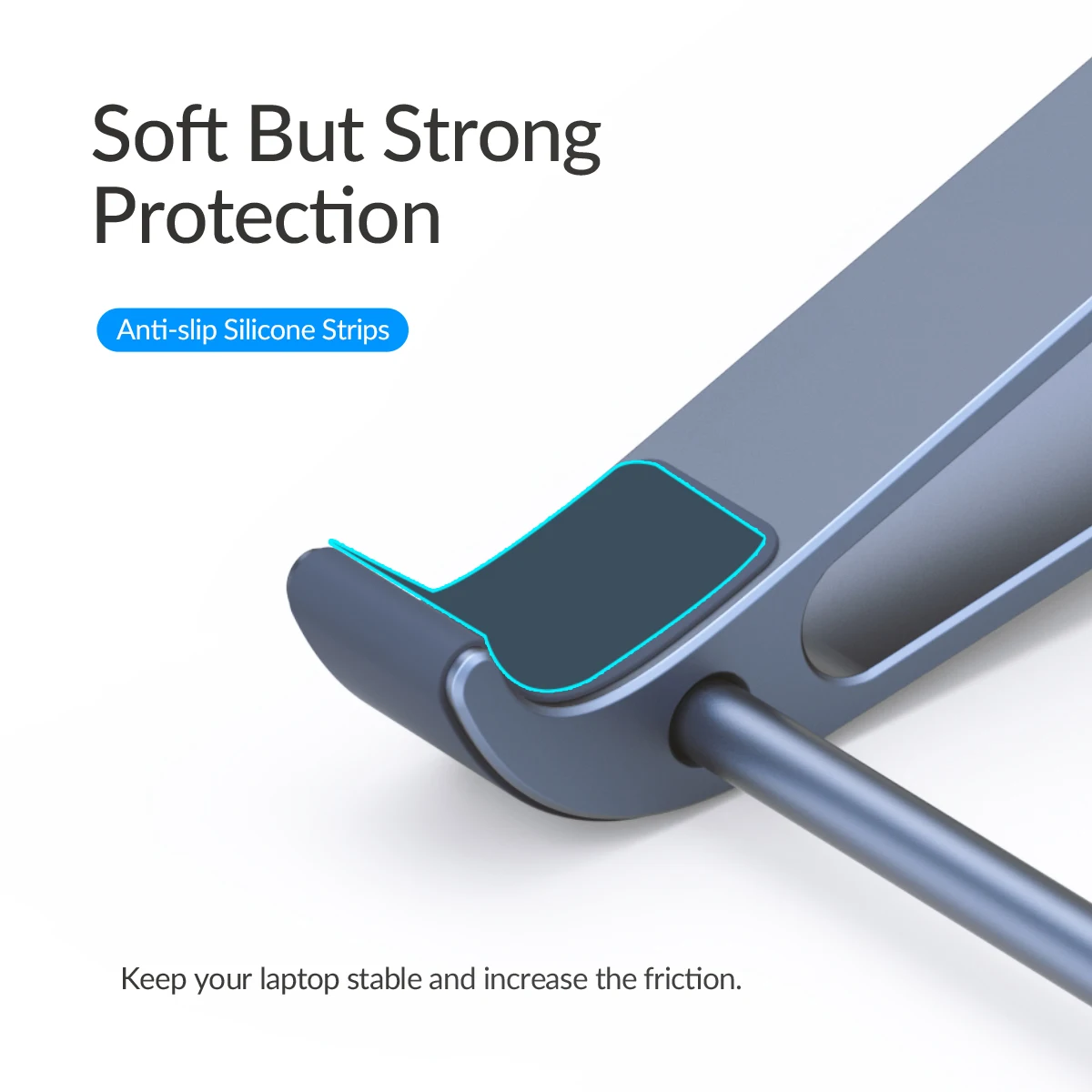 Está hecho de aleación de aluminio de calidad, estable y resistente, diseño de estructura triangular, no te preocupes por temblar. Las almohadillas de silicona en el soporte son duraderas y antideslizantes, lo que protege al ordenador de arañazos y deslizamientos. Las almohadillas de silicona en la parte inferior del soporte garantizan que el producto se mantenga estable incluso al escribir. Y las esquinas arqueadas Se sienten suaves y cómodas, le brindan una mejor experiencia.