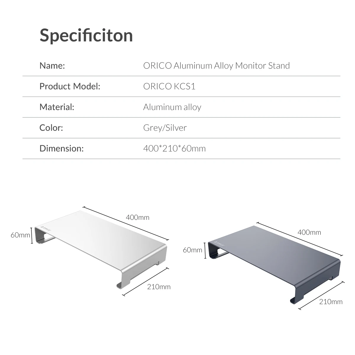 Comprar ORICO-Soporte de Monitor de aluminio KCS1 para ordenador portátil, soporte de escritorio Universal de Metal para MacBook, Lenovo y Dell