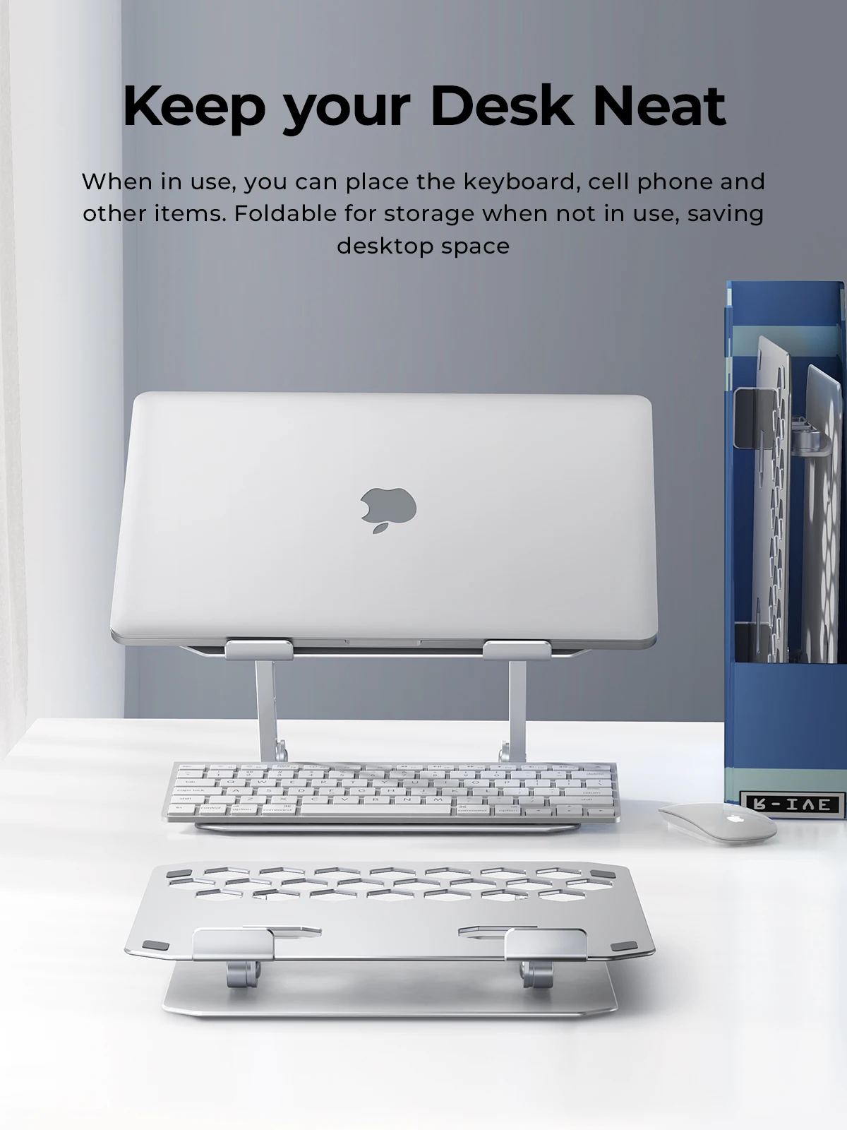 Mientras esté en uso, puede colocarle el teclado, el teléfono celular y otros elementos. Es asequible para almacenamiento cuando no está en uso, lo que ahorra espacio en el escritorio.