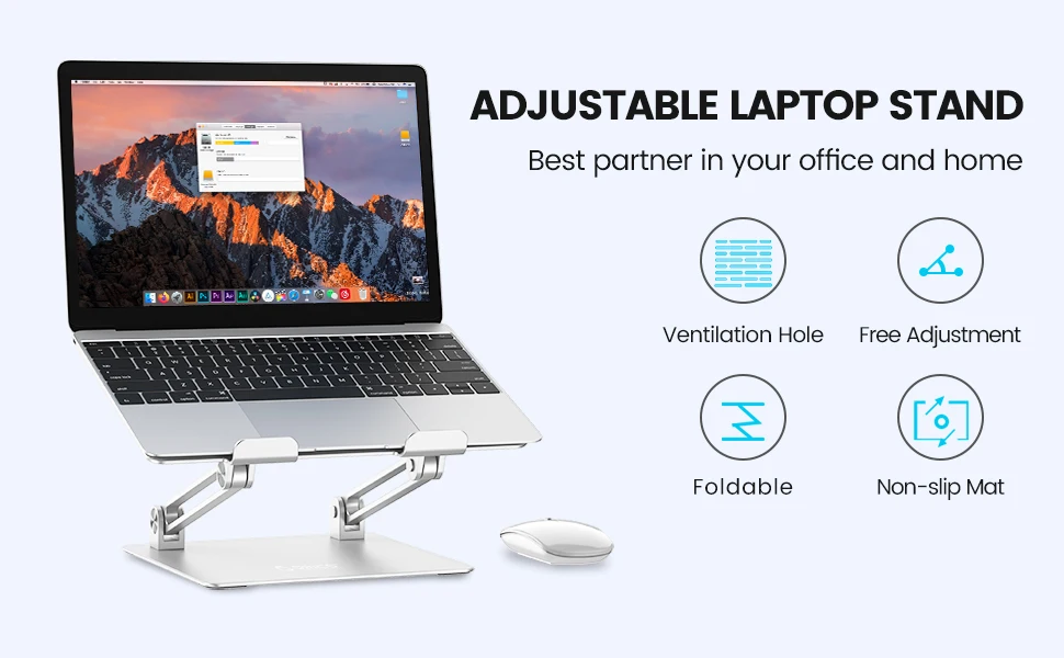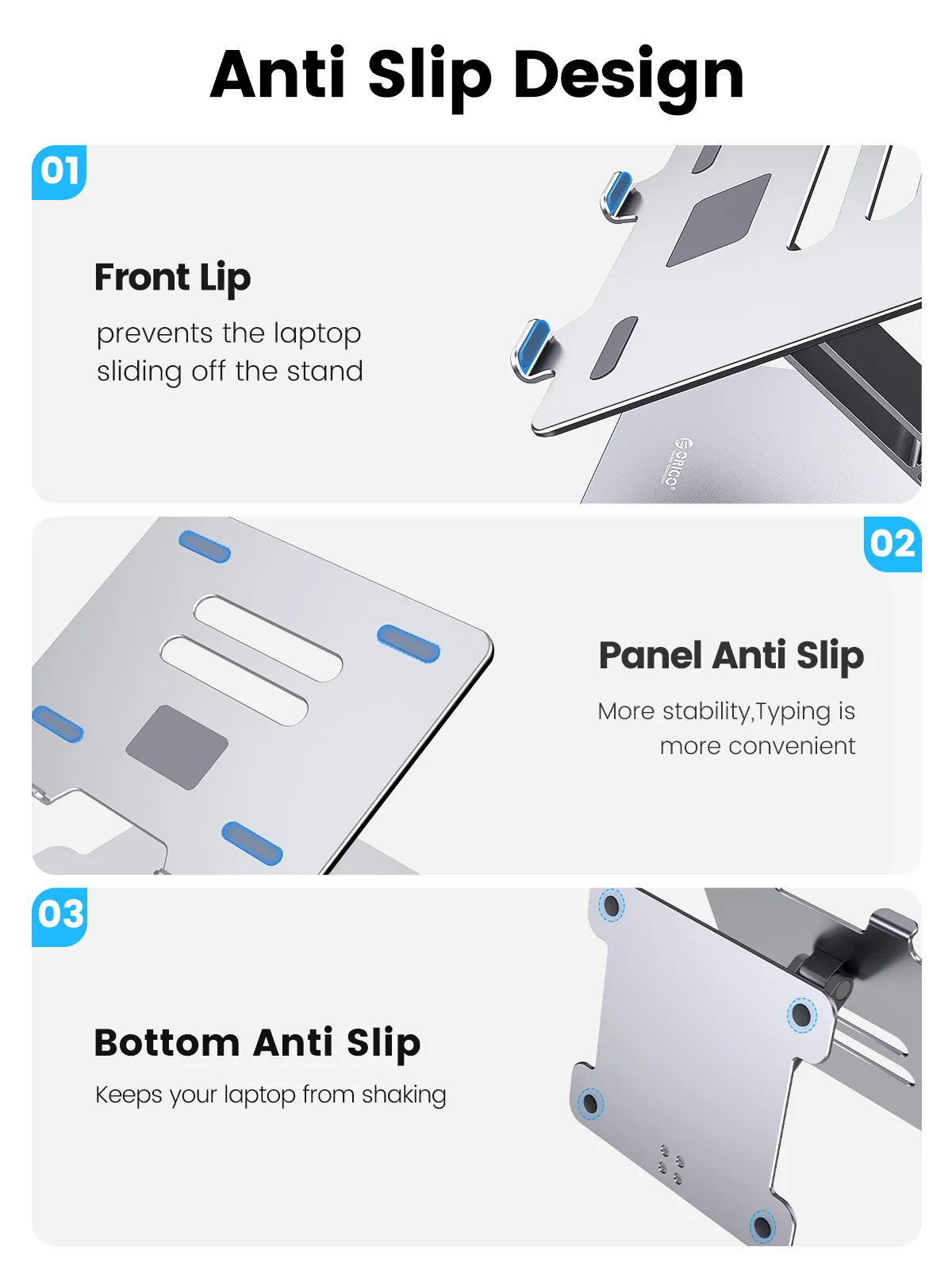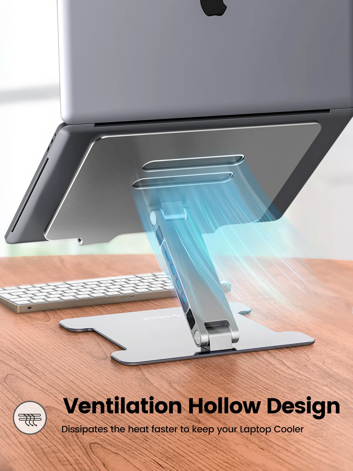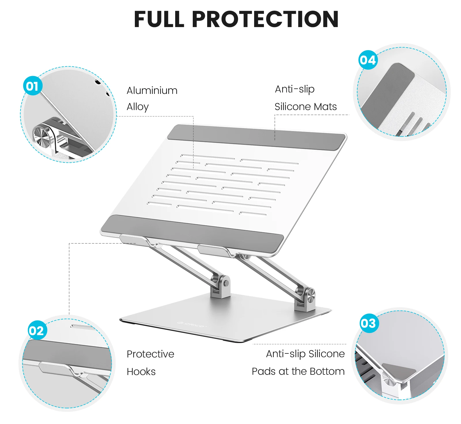 Con el material de aleación de aluminio especialmente procesado, el soporte para portátil ORICO puede ser de tacto delicado, fácil de limpiar, a prueba de óxido; a prueba de arañazos; Aleación de conducción de calor de metal y diseño hueco de ventilación, para ayudar al ordenador a enfriarse, evitar el sobrecalentamiento.