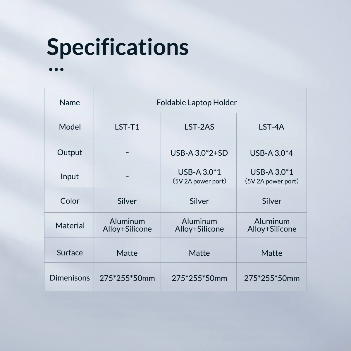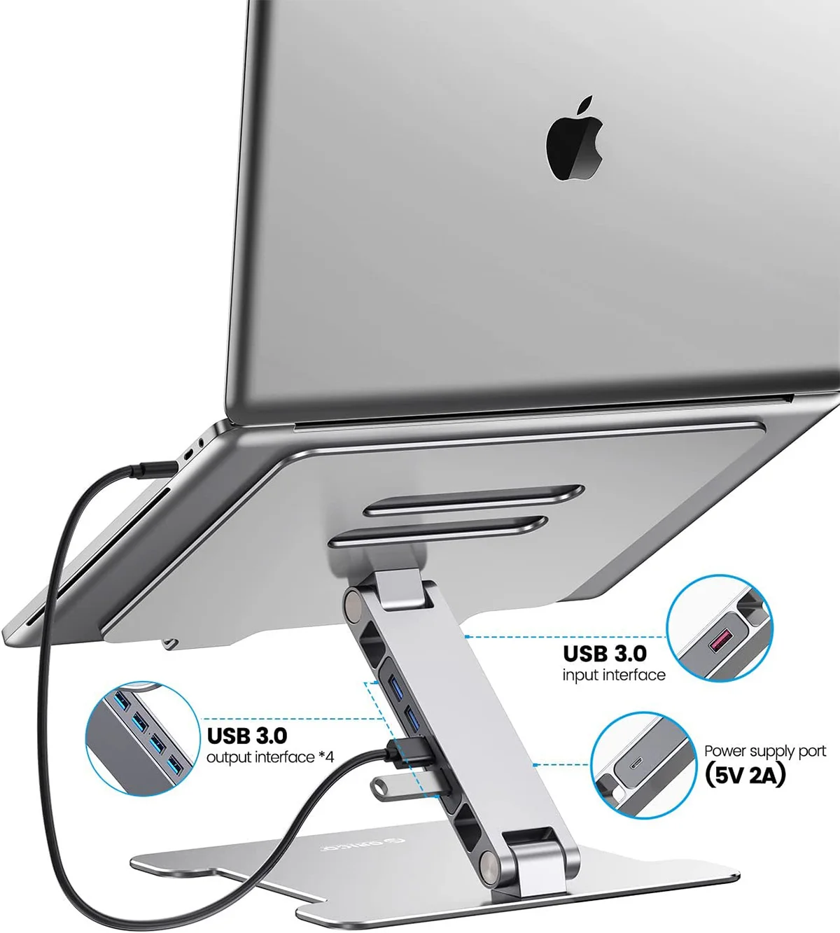Este soporte para computadora portátil tiene 3 versiones, 2 de las cuales tienen funciones de concentrador.Una versión es que admite la expansión de 4 USB3.0 puertos, amplían varios dispositivos al mismo tiempo, sin enchufar ni desconectar repetidamente.y USB3.Interfaz 0, velocidad de transmisión de 5 Gbps, que le brinda una experiencia de alta velocidad.y otra versión viene con dos USB 3.0 interfaces y ranuras para tarjetas compatibles con SD, puede transmitir y acceder a archivos de manera eficiente.(Elija con cuidado al comprar)