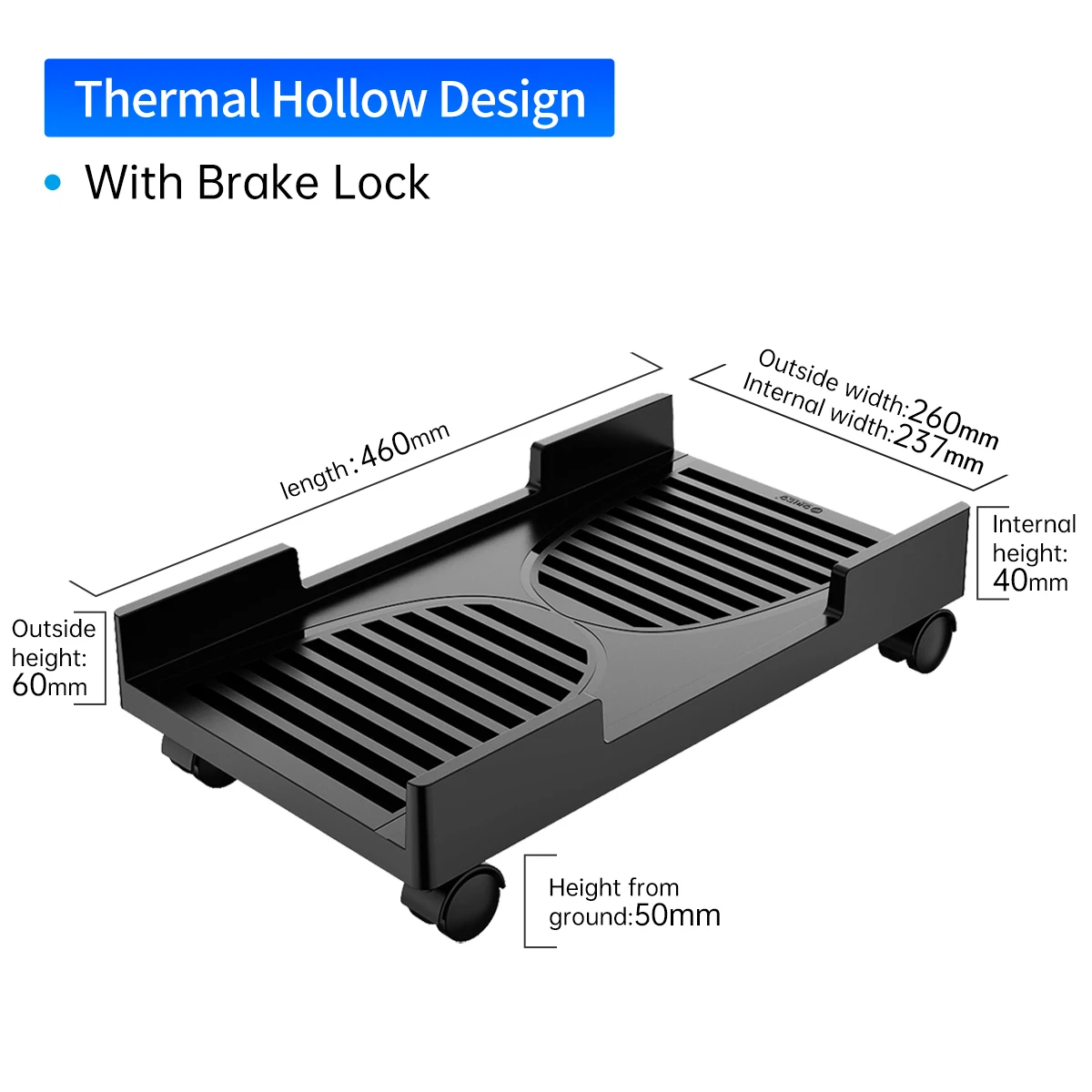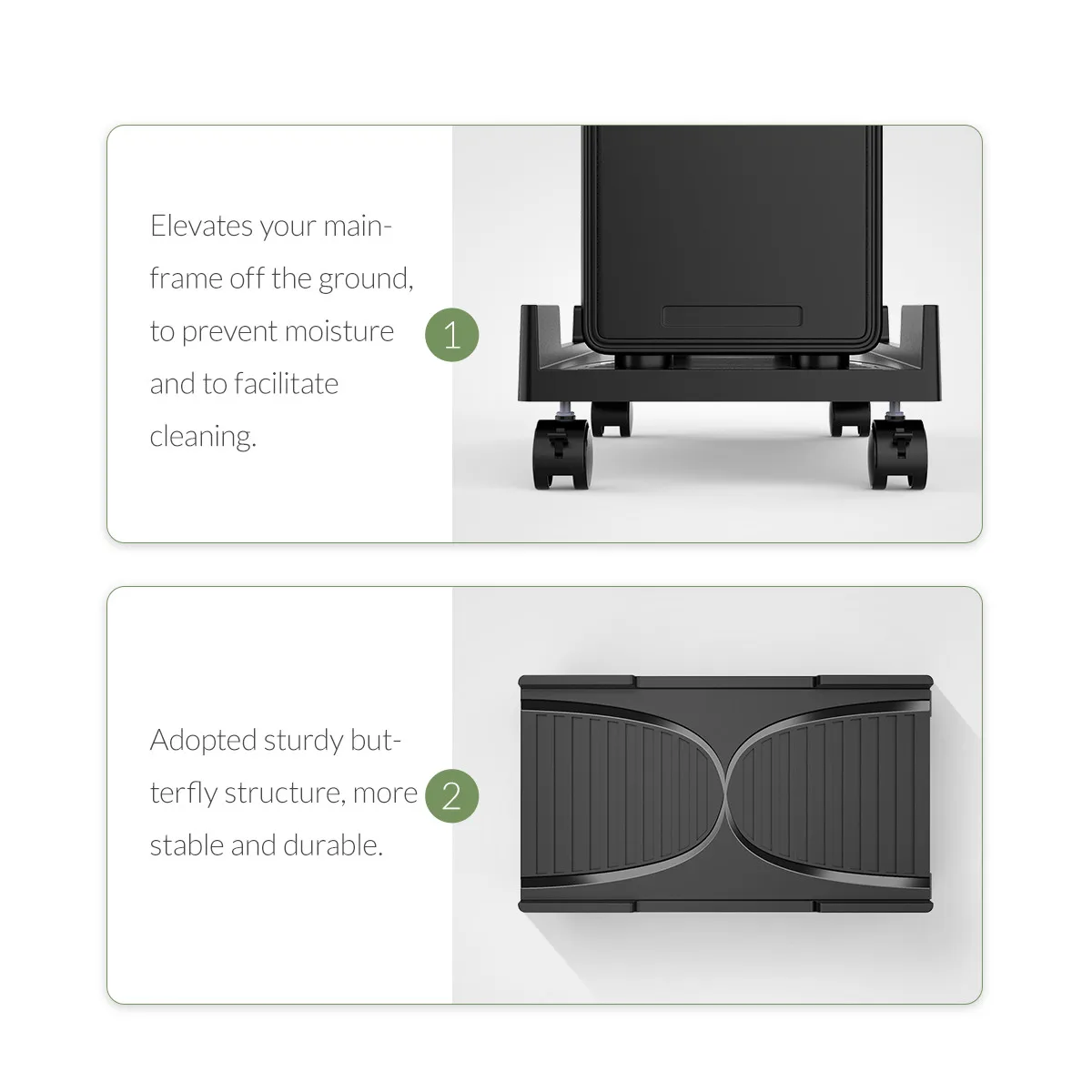 * Hollow Bottom Design,The base adopts hollow out design,Properly increase the distance to keep the computer tower away from the ground, enhance the bottom and surrounding heat dissipation to keep it clean and ventilated, and save desktop space by placing the CPU under or next to the table.