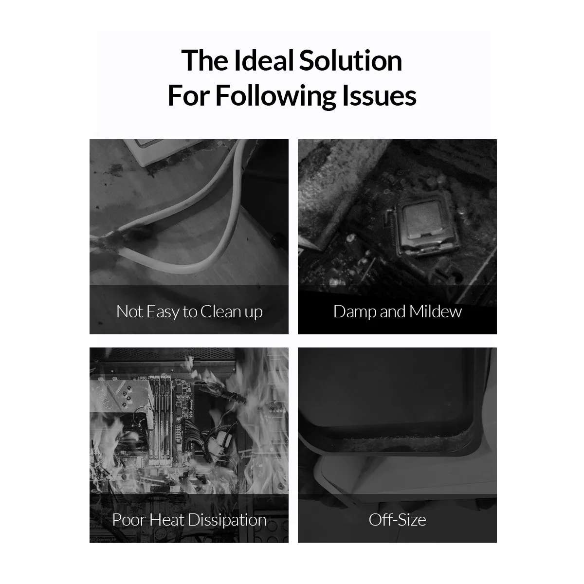 * Elevates your mainframe off the ground, to prevent moisture and to facilitate cleaning.Adopted sturdy butterfly structure, more stable and durable.Thermal hollow design to assist the mainframe in cooling.High-side edges, provide a firm grip on your computer case and avoid turning over.