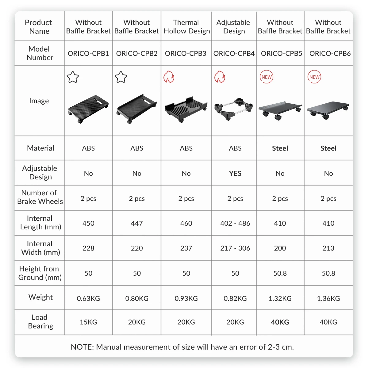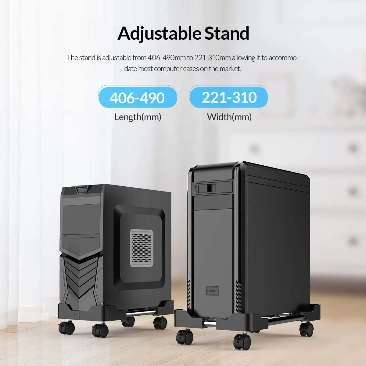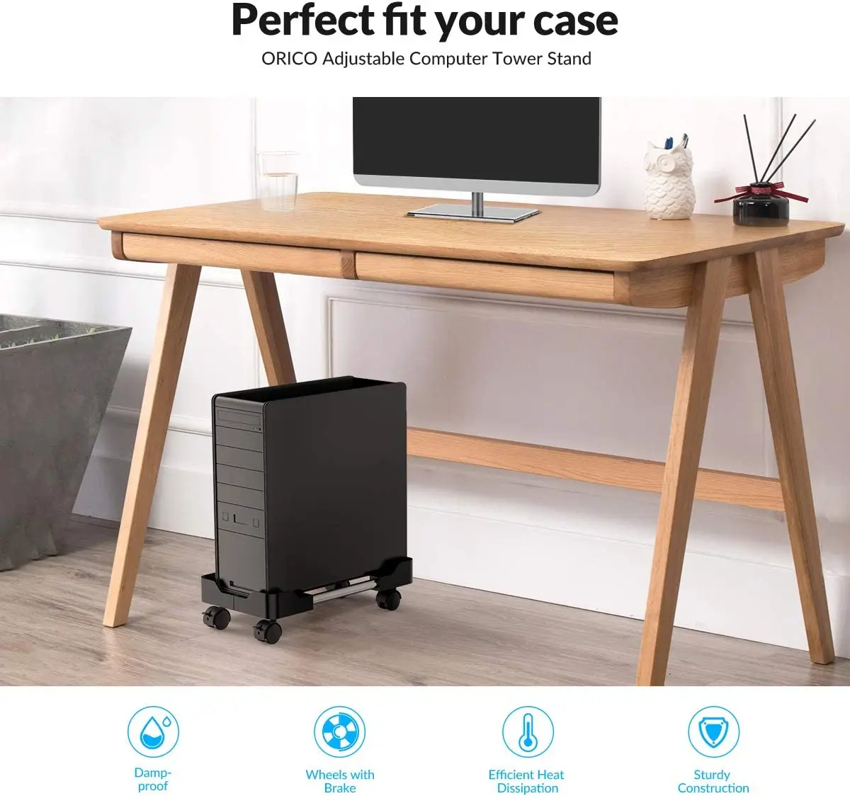 Comprar ORICO Soporte con Rueda para CPU, Soporte de Ancho Ajustable bajo Mesa Adecuado, Cuatro Esquinas con Barandilla de 5cm para Computadoras de Escritorio o Carcasas de Computadora