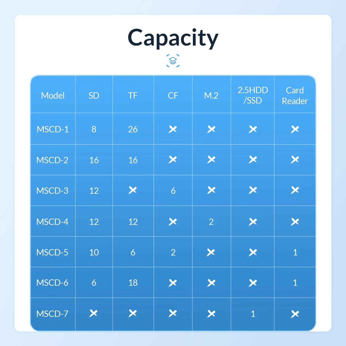 Tipo de tarjeta aplicable: Tarjeta TF(Micro SD) X26, tarjeta SD x8