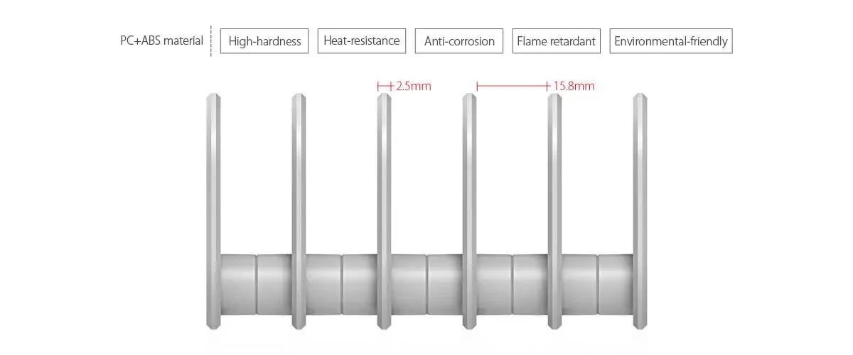 Adopts PC+ABS material, features high-hardness, heat-resistance, anti-corrosion, flame retardant and environmental-friendly.