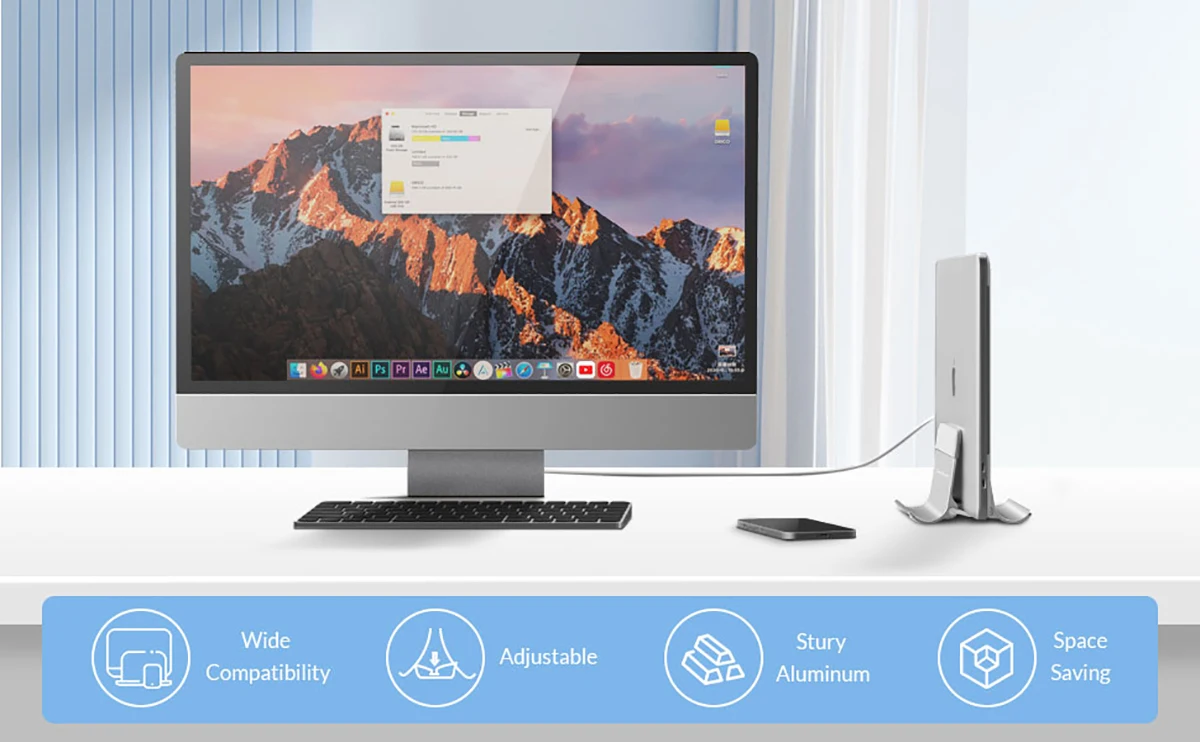 El soporte vertical de aluminio para portátil ORICO sostiene su portátil en una posición vertical para maximizar su valioso espacio de escritorio o mesa. Y ambos lados del soporte también pueden colocar teléfonos móviles, tabletas, bolígrafos, cuadernos, etc.