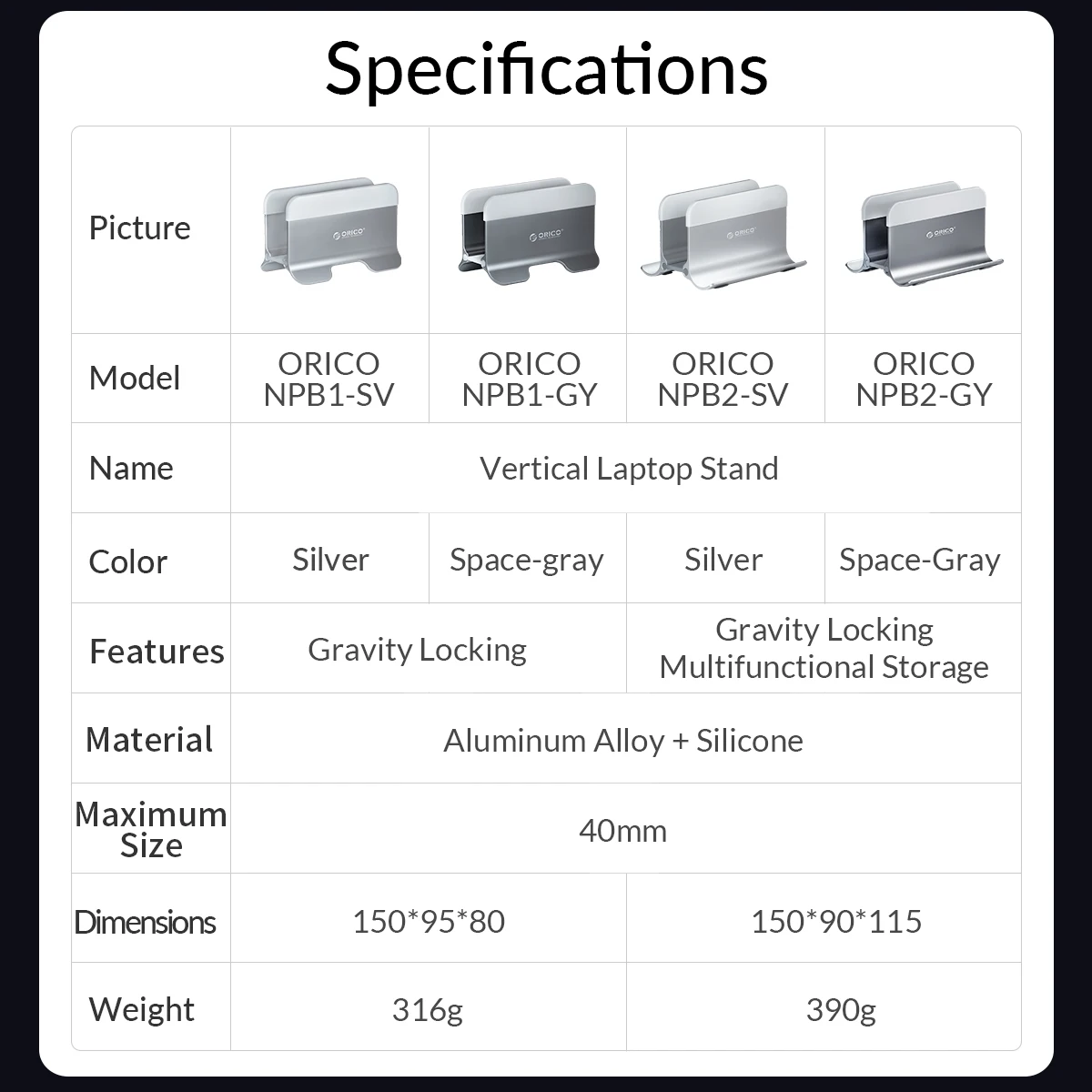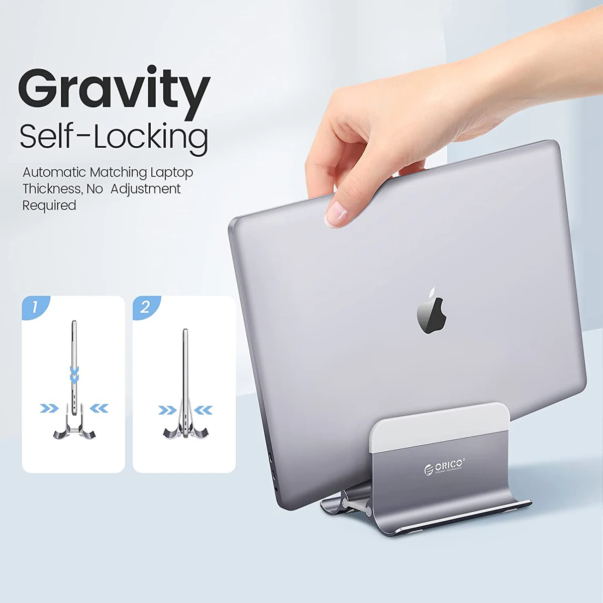 Comprar ORICO-soporte Vertical de aluminio para ordenador portátil, soporte de bloqueo por gravedad para escritorio, Notebook, tableta, para almacenamiento, MacBook, Dell, Samsung