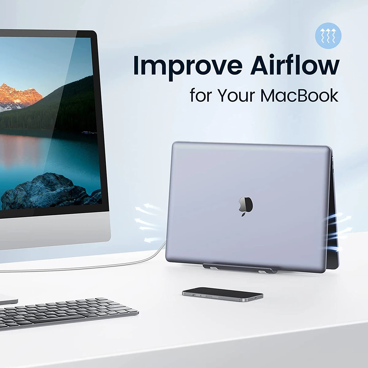 El soporte vertical de aluminio para portátil ORICO sostiene su portátil en una posición vertical para maximizar su valioso espacio de escritorio o mesa. Y ambos lados del soporte también pueden colocar teléfonos móviles, tabletas, bolígrafos, cuadernos, etc.
