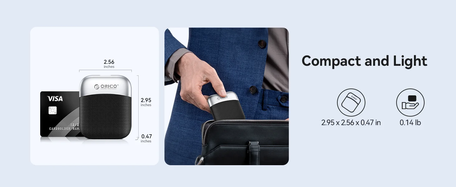 Ultrapequeño (2,56*2,95*0,47 pulgadas) y liviano (0,14 libras), cabe fácilmente en su bolsillo o bolso para computadora portátil.La funcionalidad Plug-and-play permite un fácil acceso y transferencia de datos mientras viaja, sin controladores ni configuraciones adicionales.