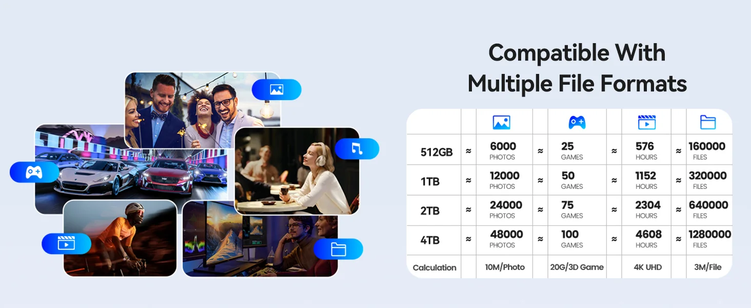 Velocidad de transferencia de hasta 460 MB/s, copia de seguridad o almacena rápidamente fotos, archivos de video grandes y activos de diseño mientras viaja, lo que le brinda más tiempo para disfrutar de su contenido