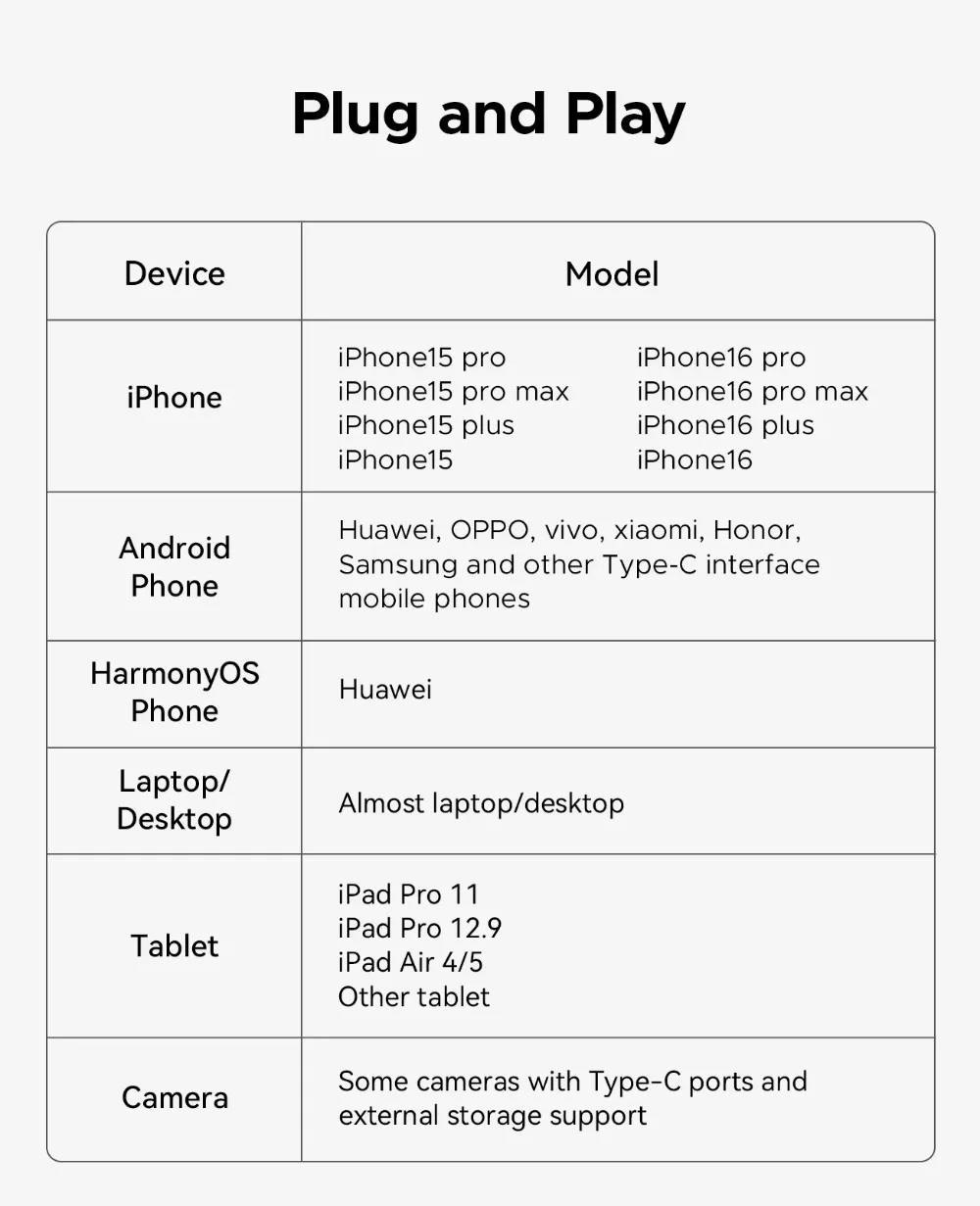 Para Huawei, OPPO, vivo, xiaomi, Honor, Samsung y otros teléfonos móviles con interfaz tipo C.