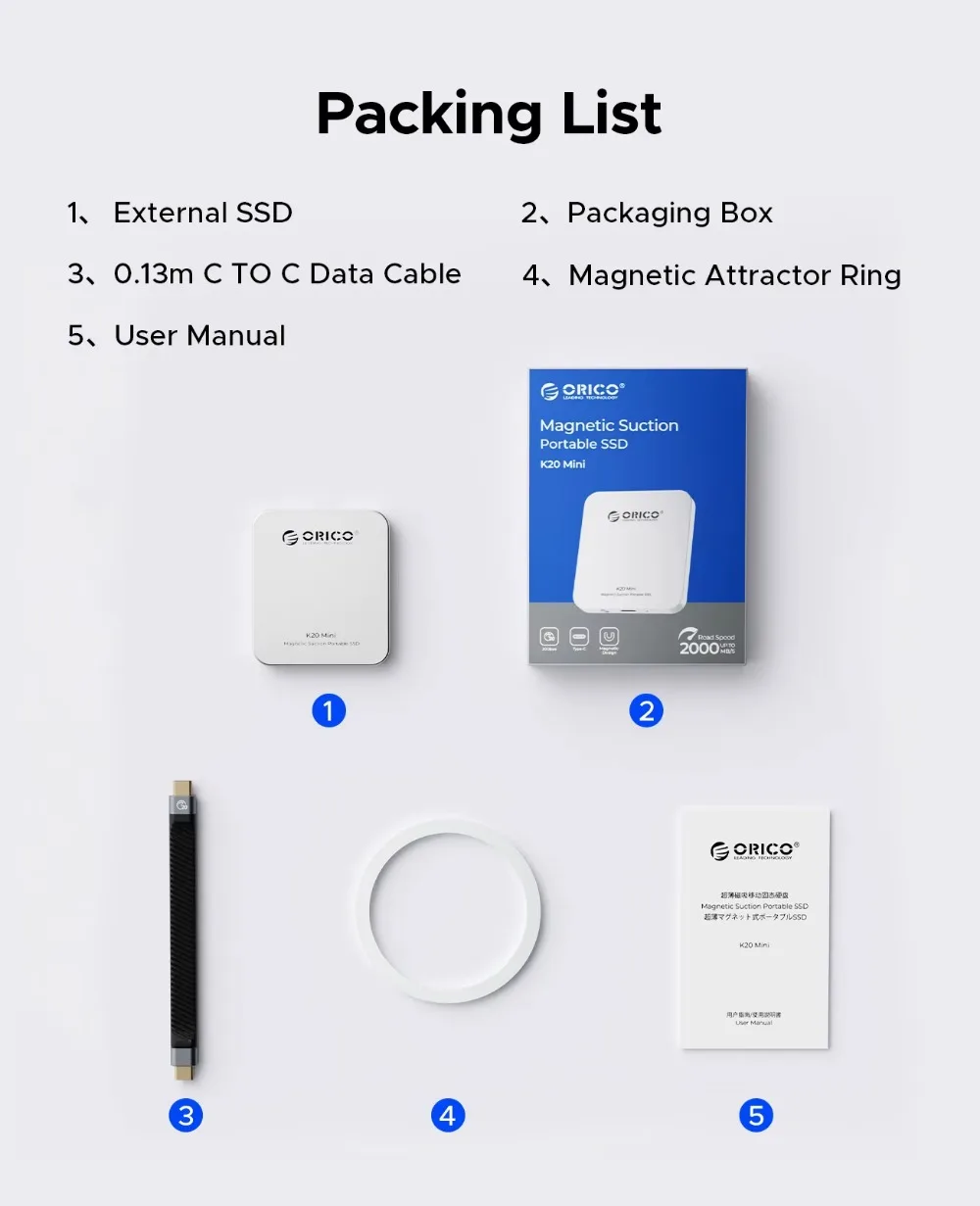 Comprar ORICO SSD externo magnético 2000 MB/S unidad de estado sólido externa de alta velocidad 2TB 1TB 512Gb HDR registro y tienda para Pc portátil Mac