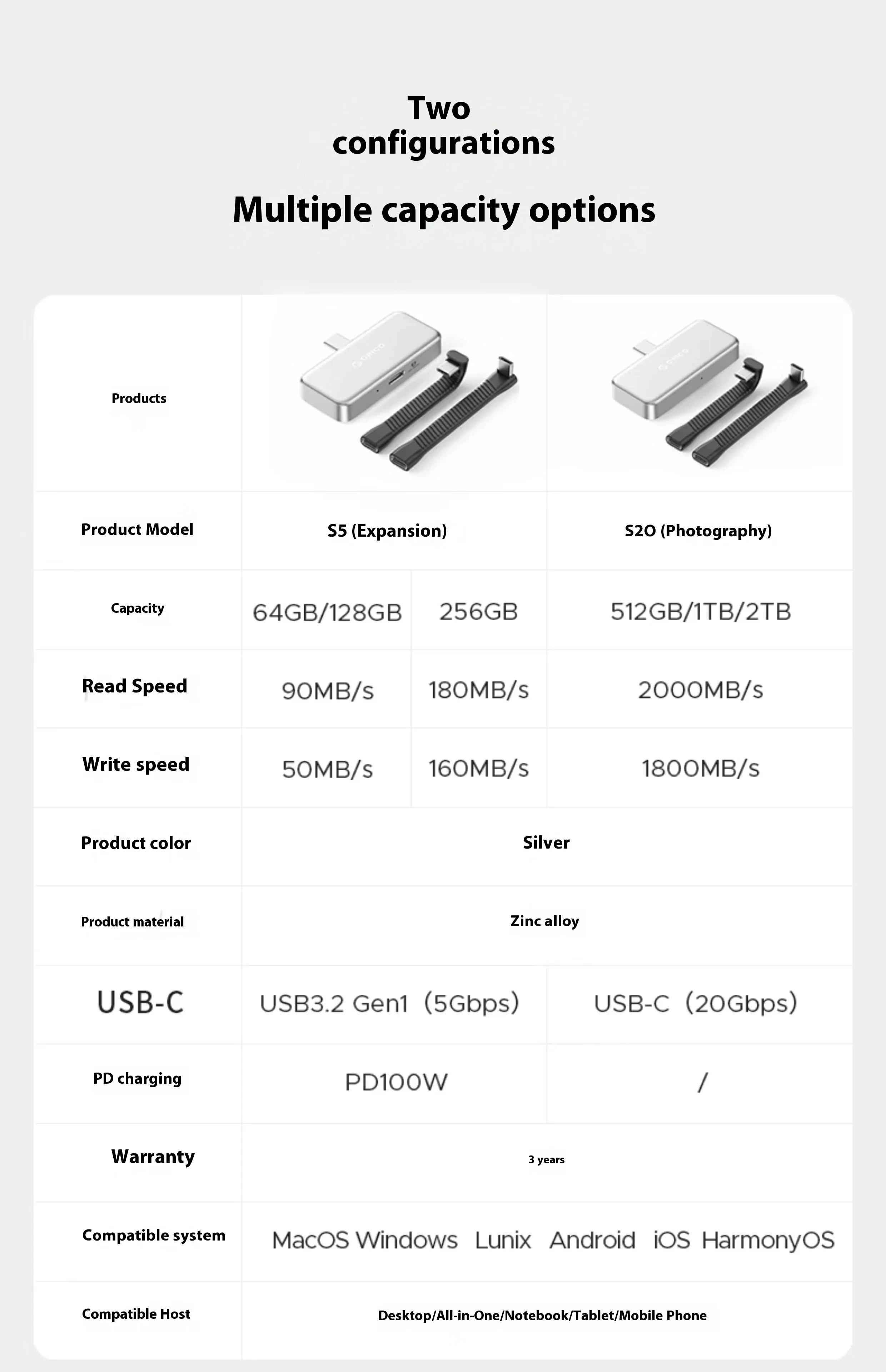 Optimizado para profesionales de fotos/vídeo, el S20 ofrece almacenamiento ultrarrápido y confiable para archivos RAW grandes y secuencias de vídeo 4K/8K mientras viaja.