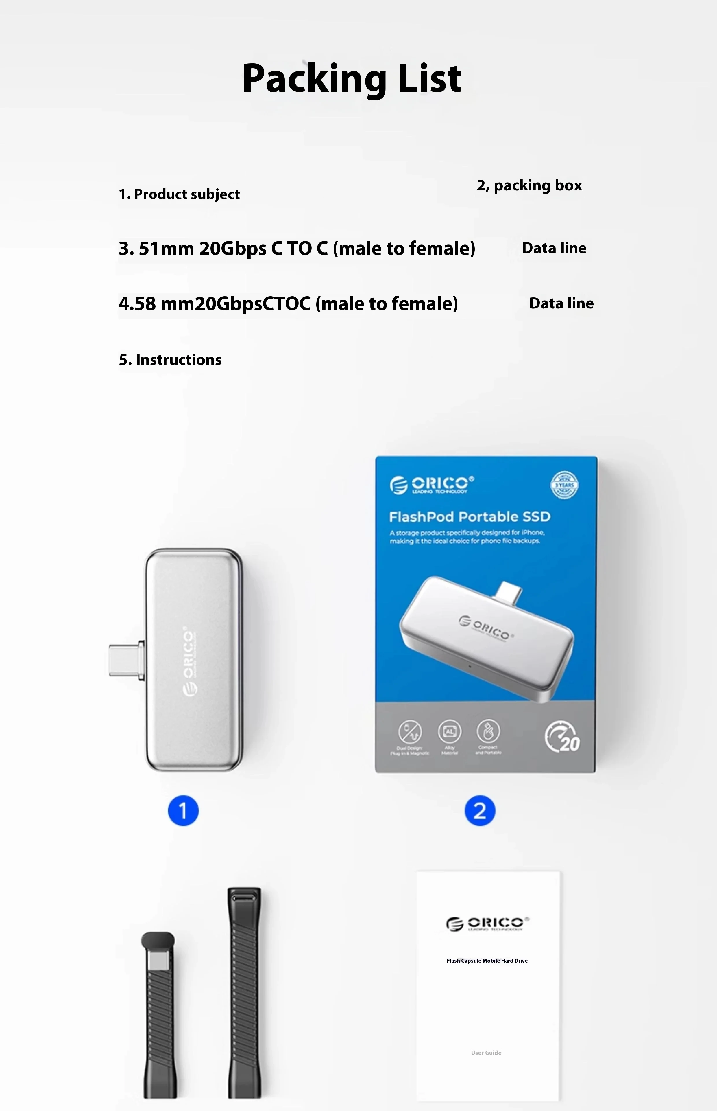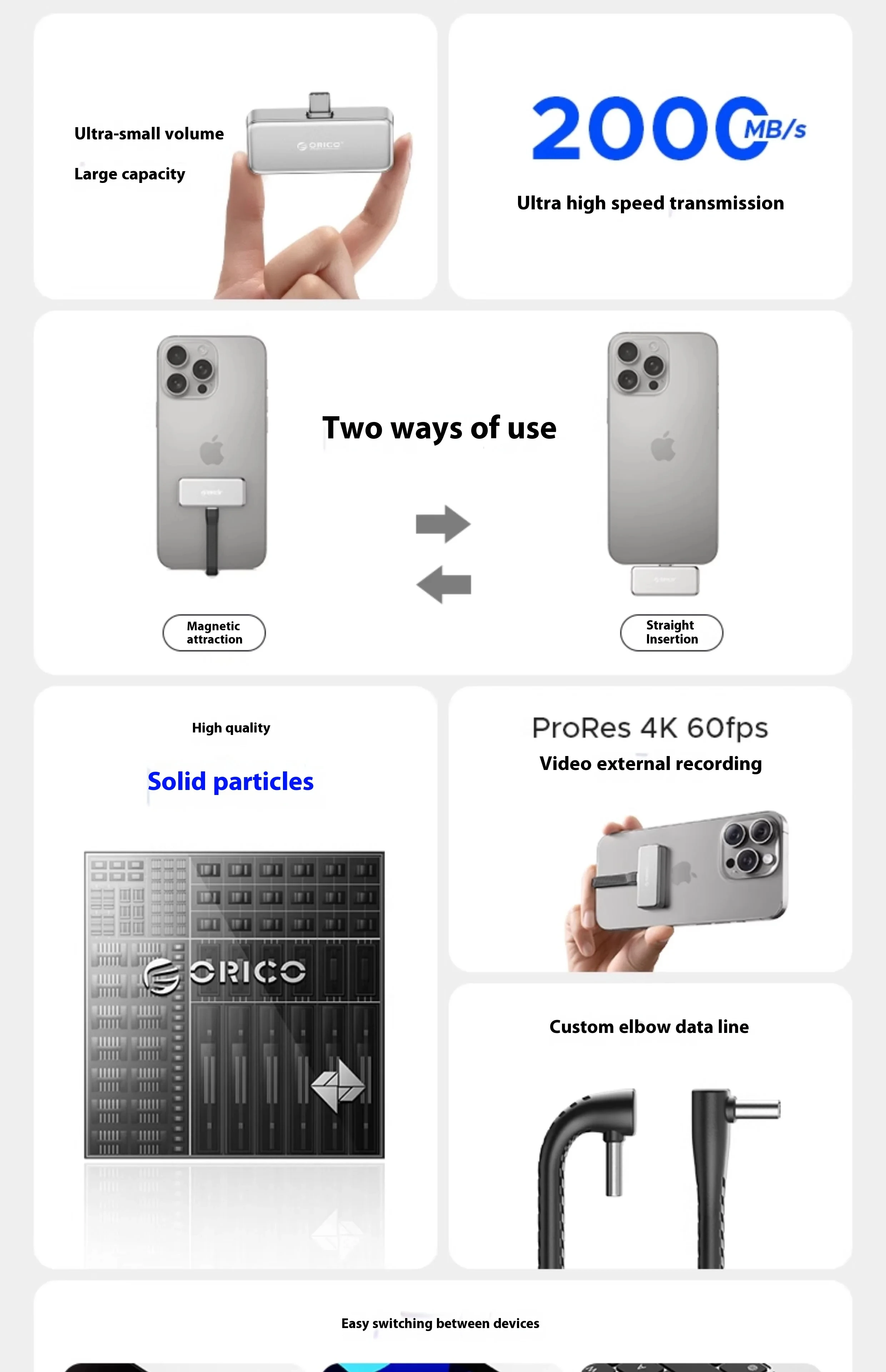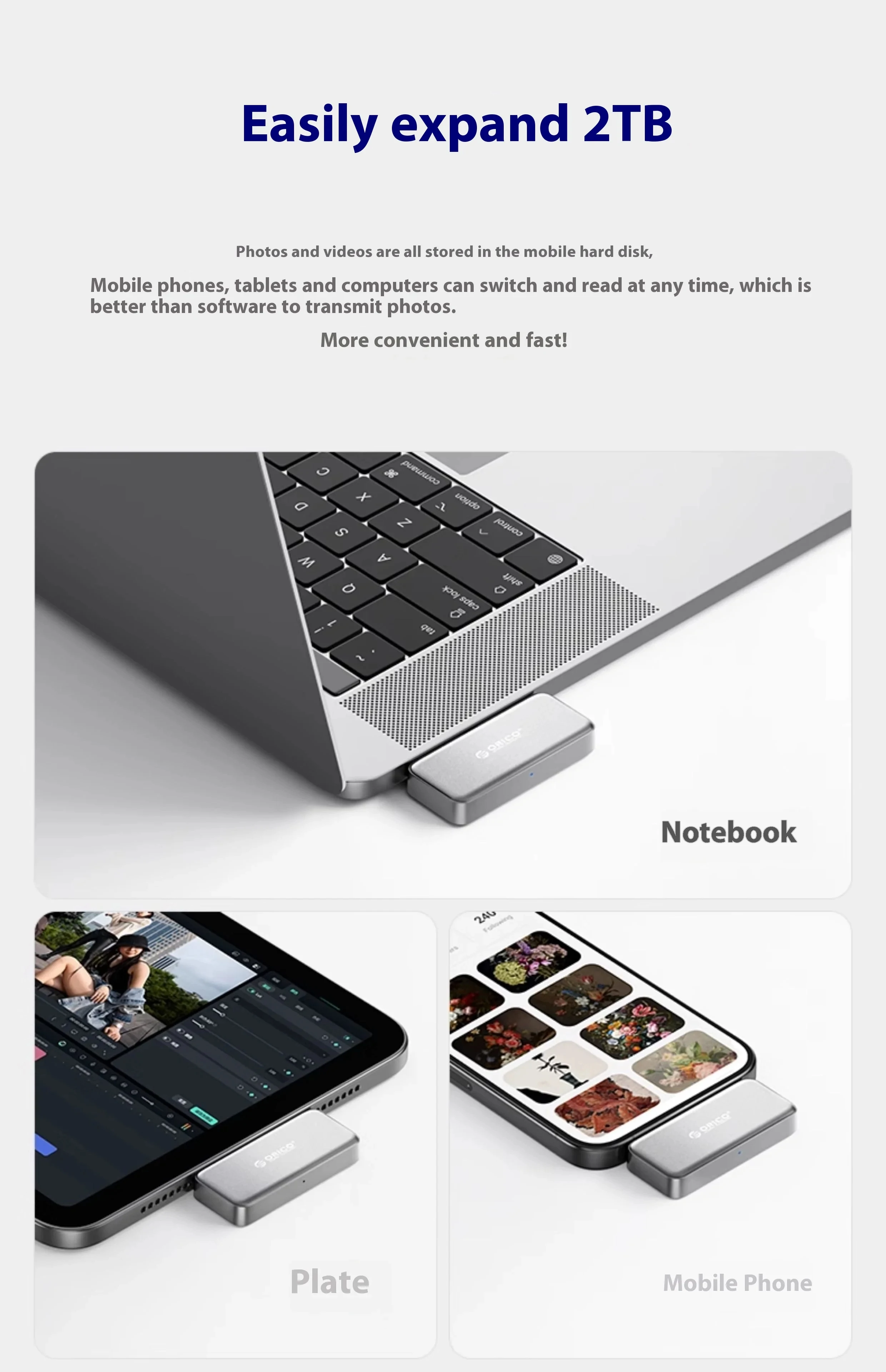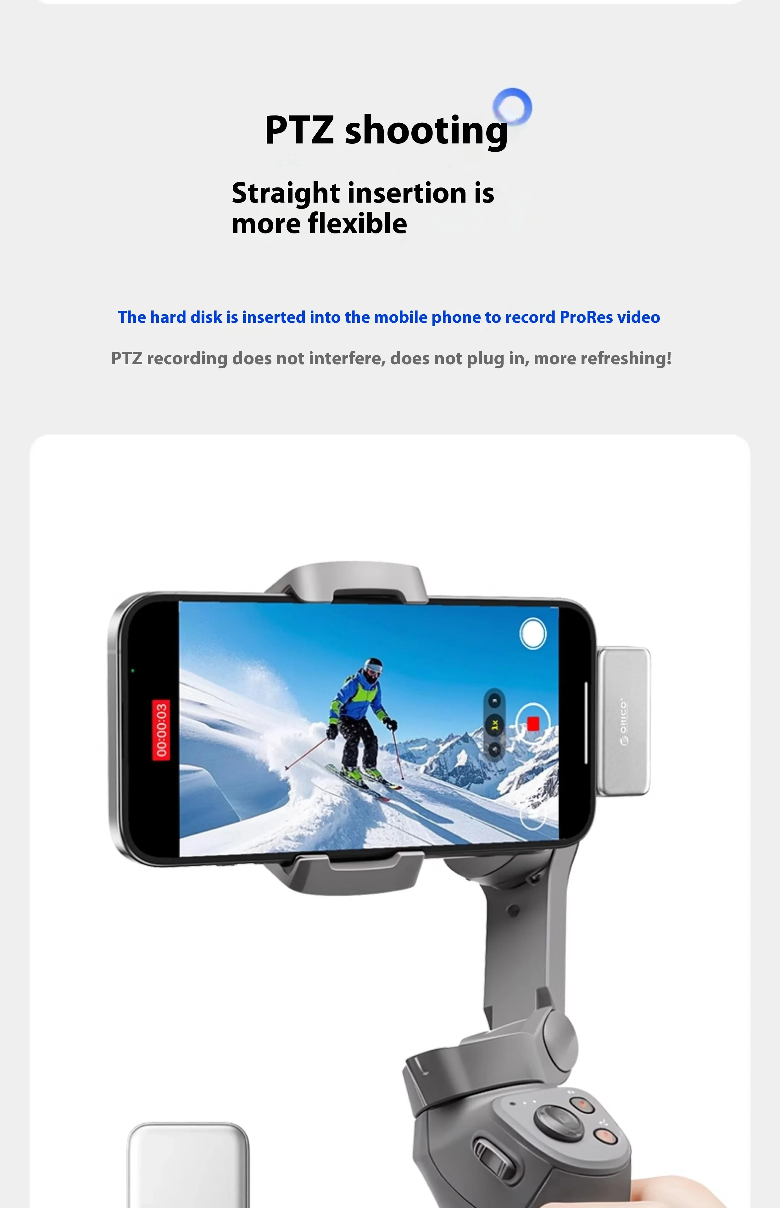 Comprar ORICO SSD portátil 1TB 512GB 2TB MINI FlashPod PSSD ProRes 2000MB/s USB-C 4K ProRes HDR grabación de vídeo para iPhone 16 15 Pro/Max