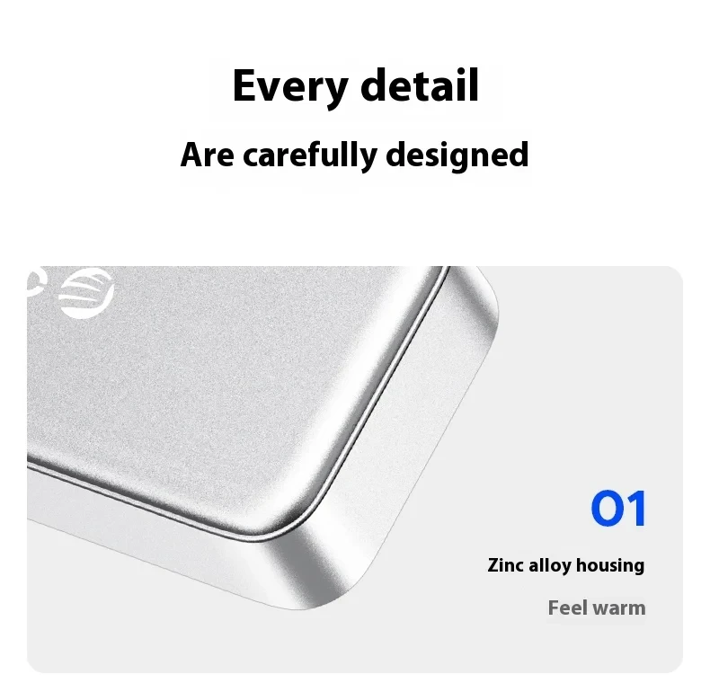 Elaborado en aleación de zinc completa, la unidad ofrece una excelente disipación de calor, resistencia a los golpesy un acabado plateado elegante y profesional.