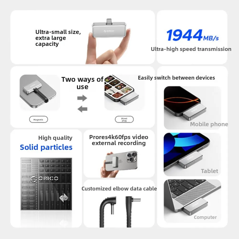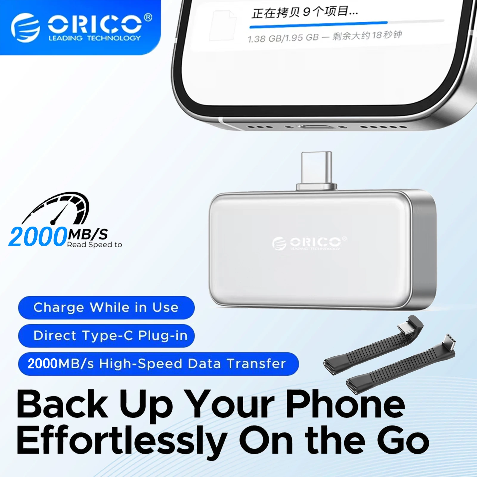 Comprar ORICO SSD portátil 1TB 512GB 2TB MINI FlashPod PSSD ProRes 2000MB/s USB-C 4K ProRes HDR grabación de vídeo para iPhone 16 15 Pro/Max