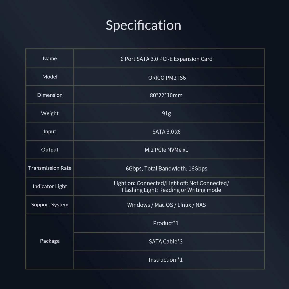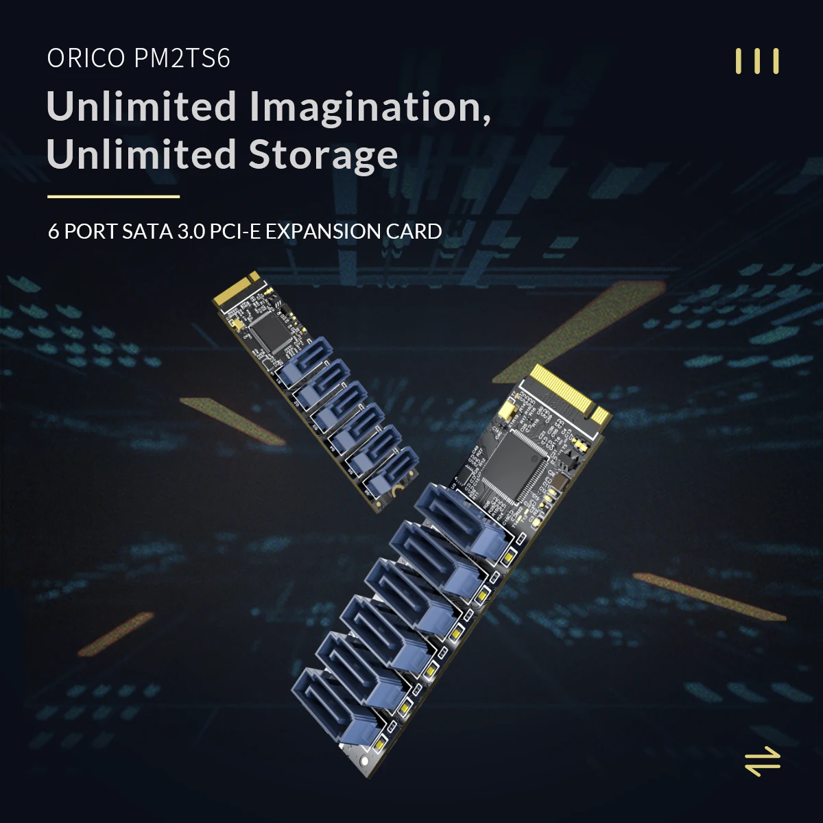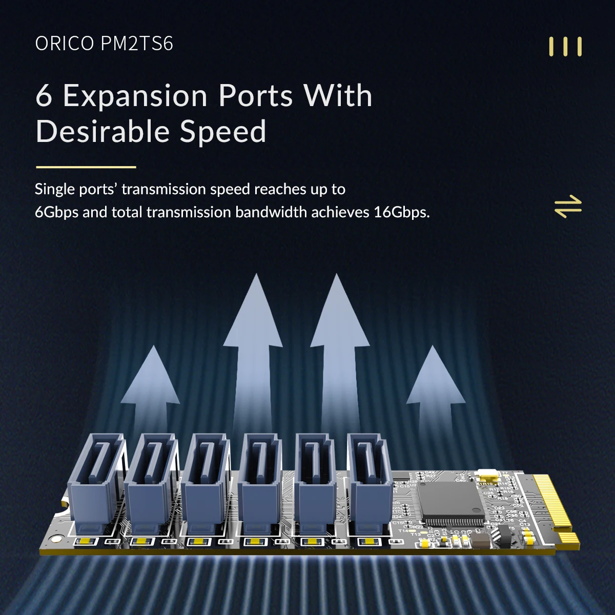 Comprar ORICO-tarjeta adaptadora PCIe Gen3 M.2 M a 6 puertos SATA 3,0, convertidor NVMe a SATA, tarjeta de expansión NVME PCIe 3,0 a SATA 16G