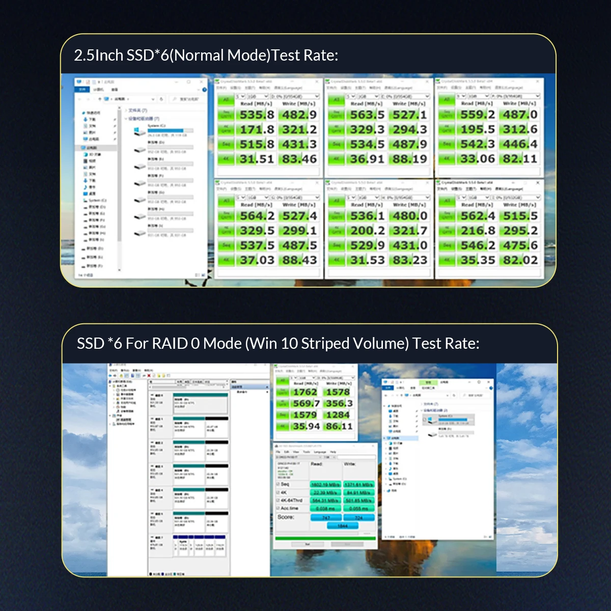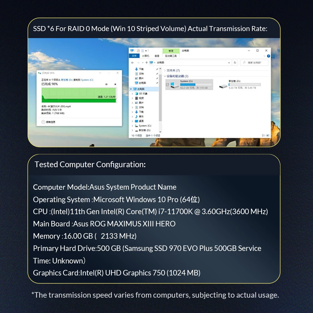 2. Realice el ancho de banda de la línea PCI Express Gen 3x2, con seis puertos SATA que se extienden desde el host de la PC hasta la ranura M de la tecla m2. La velocidad de transmisión de un solo puerto alcanza hasta 6Gbps y el ancho de banda de transmisión total alcanza 16Gbps.